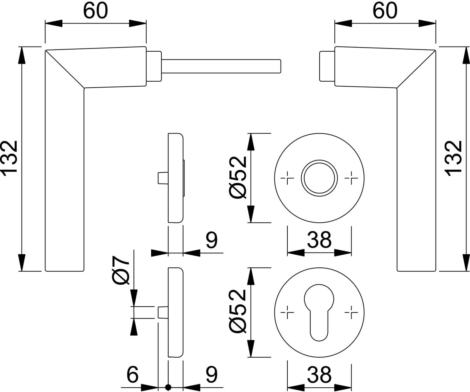 Hoppe Door Handle Set Stockholm??-??on Ros. Profile Cylinder, 37??-??47??anodised silver