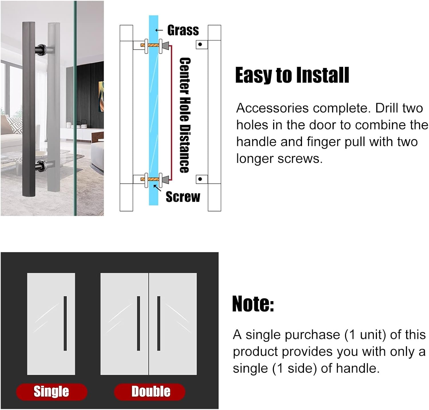 Elevate the elegance of your home with these stunning stainless steel door handles, designed to add a touch of sophistication to any space.【Specification】:- Material: Stainless Steel- Style: Brushed Finish- Size: - Overall Length: 60/80/100/120/150cm (23.6/31.5/39.4/47.2/59.1in) - Hole Spacing: 40/50/70/80/110cm (15.7/19.7/27.6/31.5/43.3in)- Suitable for: Doors, gates, garages, barns, sheds, closets, sliding doors, and more- Note: Each order includes a pair of handles for a single door. For double doors, please place two separate orders.【Features】:- Can be used for both left and right handed applications- Smooth polished chamfered edges for a strong and durable structure- Offers a comfortable and secure grip to prevent unexpected injuries- Versatile installation on interior or exterior doors, compatible with various materials like wood, glass, or aluminum【Package Included】:- Bar Handle×1- Screwdriver×1- Hex Wrench×1- Long Screw×2- Fixed Sleeve×2- Hexagon Socket Screws×4- Anti-slip Silicone Mat×4【Satisfactory Service】:- Contact us with any questions; we aim to respond within 24 hours- Please be aware of potential color variations due to monitor settings- Allow for a 1-3mm error in measurements due to manual processes; please consider before purchasing