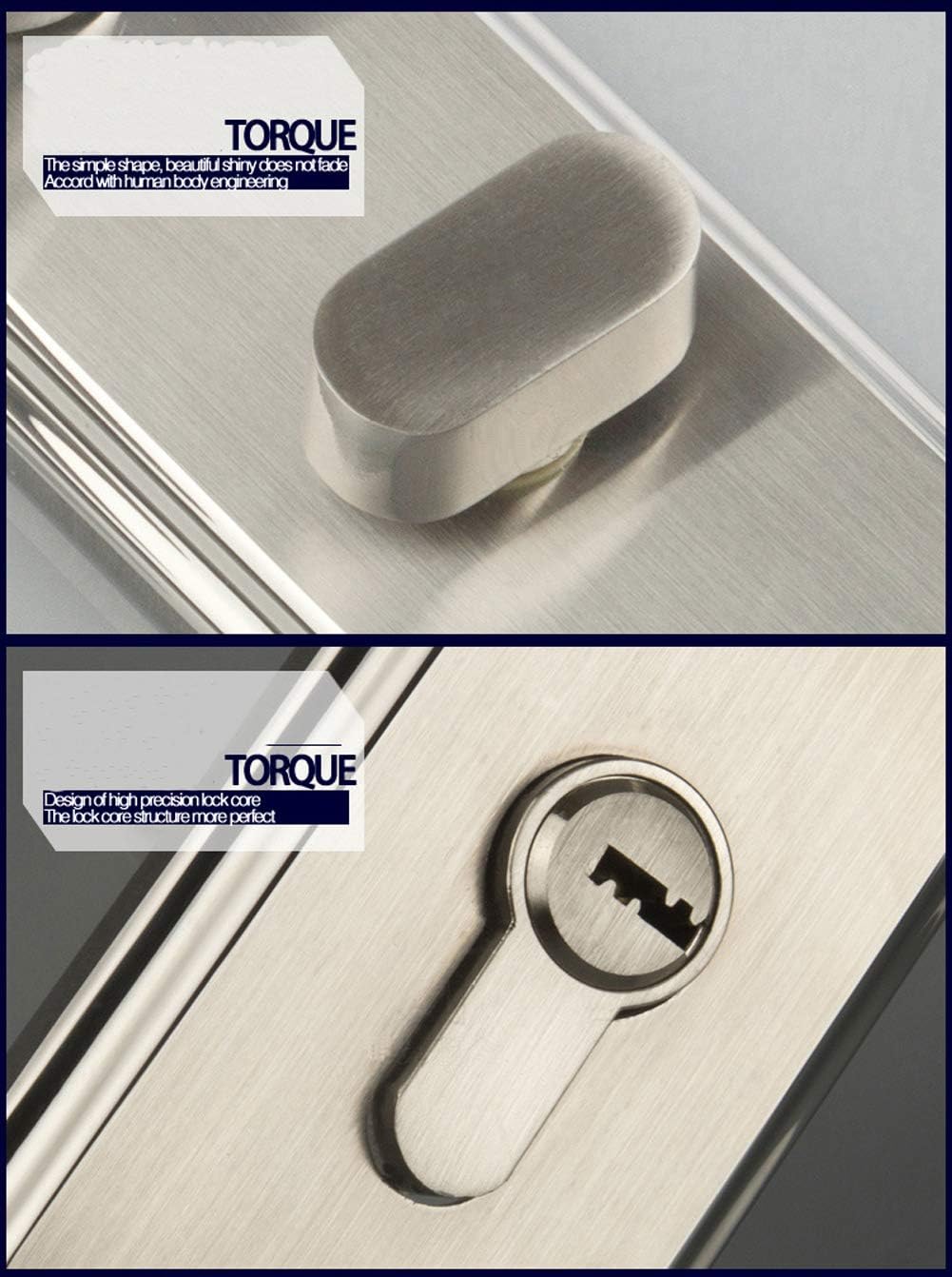 Materials: Door handles & Panel: Stainless Steel Deadbolt: Zinc Alloy Lock Cylinder: Zinc & Copper Specifications: Center distance:50mm Lock margin distance:50mm Handle Length: 120mm Handle Panel Size: 165X50mm Fit for doors 35mm to 45mm thick Package includes: Door handles for both sides Latch mechanism Handle Panel Mounting screws Keys