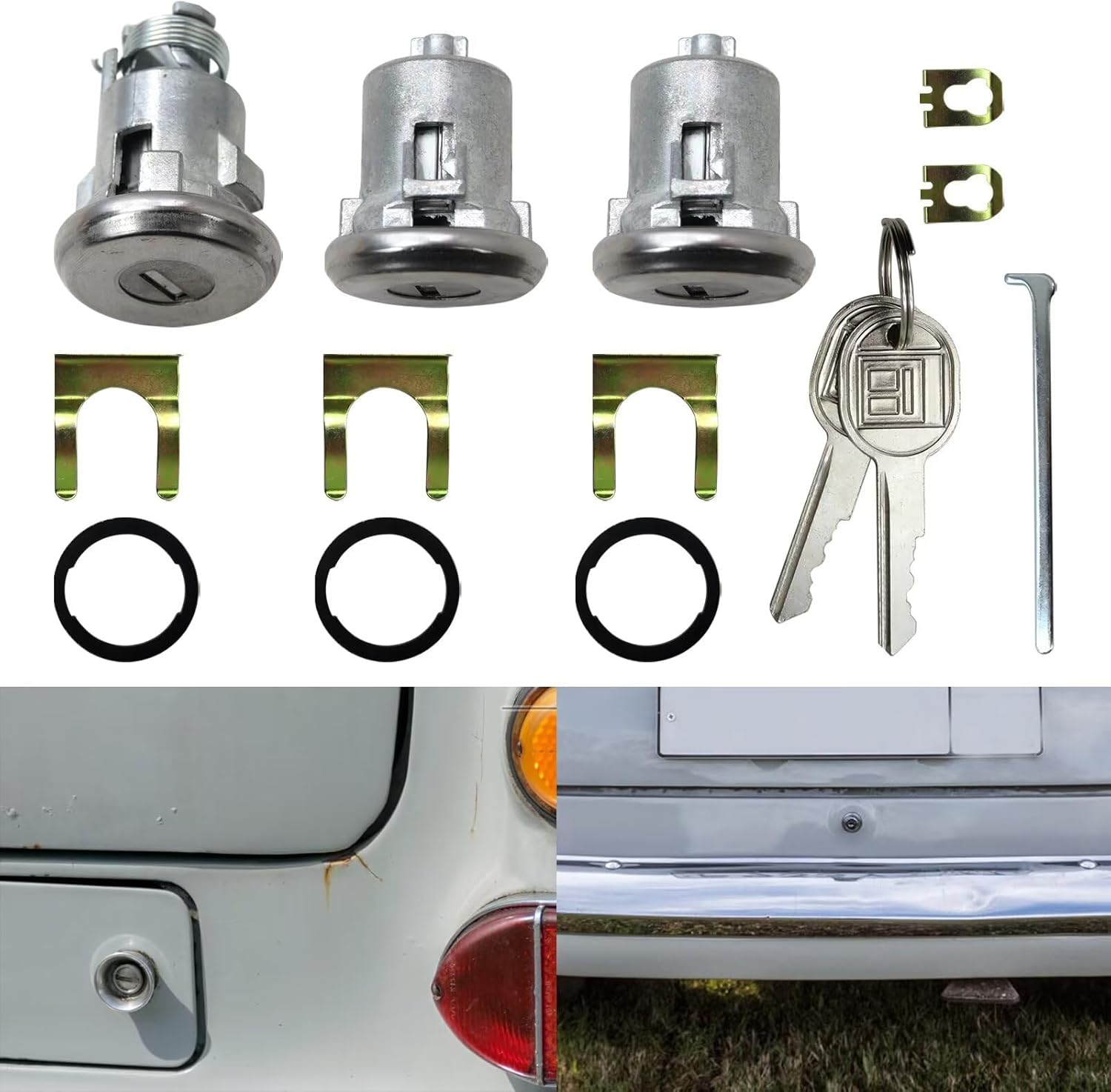Description: >Type: Door Lock Set with Keys >Built to strict quality control standards >Features: dur able, W/Keys, Easy Installation, >Mounts up to the original equipment perfectly Part number: >654394765282 Fitment: >Fits for Chevelle >Fits for Malibu >Fits for Monte Carlo >Fits for Camaro >Fits for G-M Door & Trunk Locks - Round Head Keys >Fits for Buick Skylark 1967-1970 1975-1979 >Fits for Buick Special 1963-1963 >Fits or Bel Air 1965-1967 1969-1970 >Fits for Biscayne 1965 1968 1970 >Fits for Caprice 1966-1967 1969-1970 >Fits for Caprice 1981 1983 >Fits for Caprice 1985-1986 1988-1991 >Fits for Chevy II 1965-1967 >Fits for El 1968-1970 1978-1981 >Fits for Carlo 1970-1973 1975-1977 >Fits for Nova 1973-1974 1977-1979 >Fits for Oldsmobile Cutlass 1965-1967 >Fits for Pontiac 1970-1971 1974-1975 1977-1978 >Fits for Pontiac Catalina 1972-1973 1977-1977 >Fits for Pontiac Grand Am 1974-1974 >Fits for Pontiac Grand Prix 1970-1972 1975-1977 1979-1981 >Fits for Pontiac GTO 1968-1969 1972-1974 >Fits for Pontiac Parisienne 1969-1970 >Fits for Pontiac Tempest 1963-1964 1968-1969 Package Contents: >3 x Lock >2 x Key >3 x Washer >1 x Crowbar >5 x Buckle Only the above package content, other products are not included. Note: Light shooting and different displays may cause the color of the item in the picture a little different from the real thing. The measurement allowed error is +/- 1-3cm.