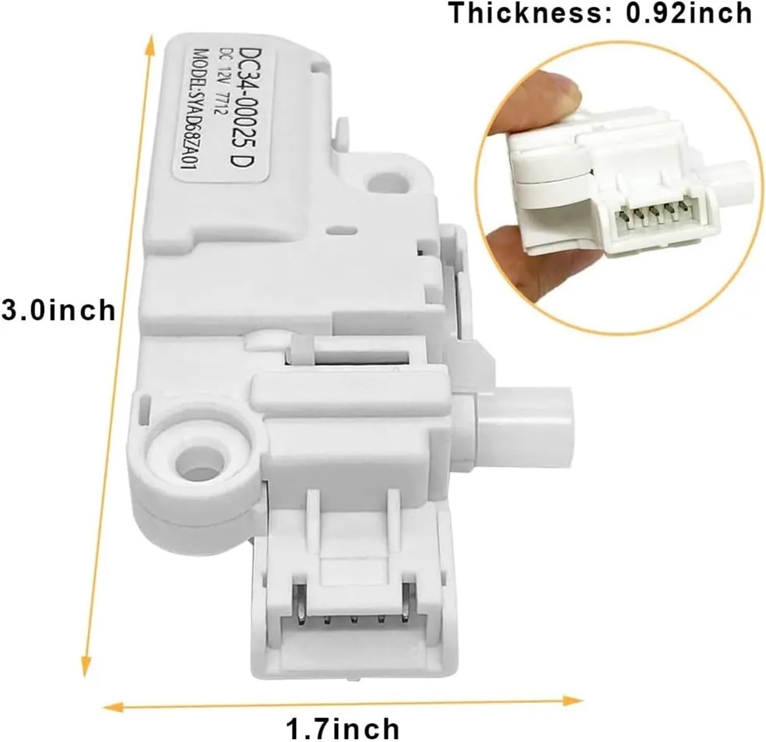 DC34-00025D DC12V Washer Door Lock Switch Replacement for WW90K74150OX/WW90K74150SC/WW90K74150O WF45K6200AW/A2 WF45K6500AZ/A2 Washing Machine Middle Door Lock Parts Replace PS11758871Parts: DC34-00025D washer door lock switch assembly fit for washer WW90K74150OX WW90K74150SC WW90K74150O replacement parts.Perfect Compatible: DC34-00025D replacement parts PS11758871, compatible with washing machine models: WD13J7825KP, WD18J7825KP, WD18N7510KW, WF45K6200AW/A2(0000) WF45K6200AW/A2-00 WF45K6200AZ/A2(0000) WF45K6200AZ/A2(0001) WF45K6200AZ/A2-00 WF45K6200AZ/A2-01 WF45K6500AV/A2(0000) WF45K6500AV/A2-00 WF45K6500AW/A2(0000) WF45K6500AW/A2-00 WF50K7500AV/A2(0000) WF50K7500AV/A2-00 WF50K7500AW/A2(0000) WF50K7500AW/A2(0011) WF50K7500AW/A2-00.Model Number : DC34-00025DOrigin : Mainland ChinaType : Washing Machine PartsDear buyer: Welcome to our Amazon store! Here, you can find a variety of washing machine accessories. If the model you are looking for is not available, you can contact customer service and we will find it for you to meet all your needs. Wishing you a pleasant shopping experience!