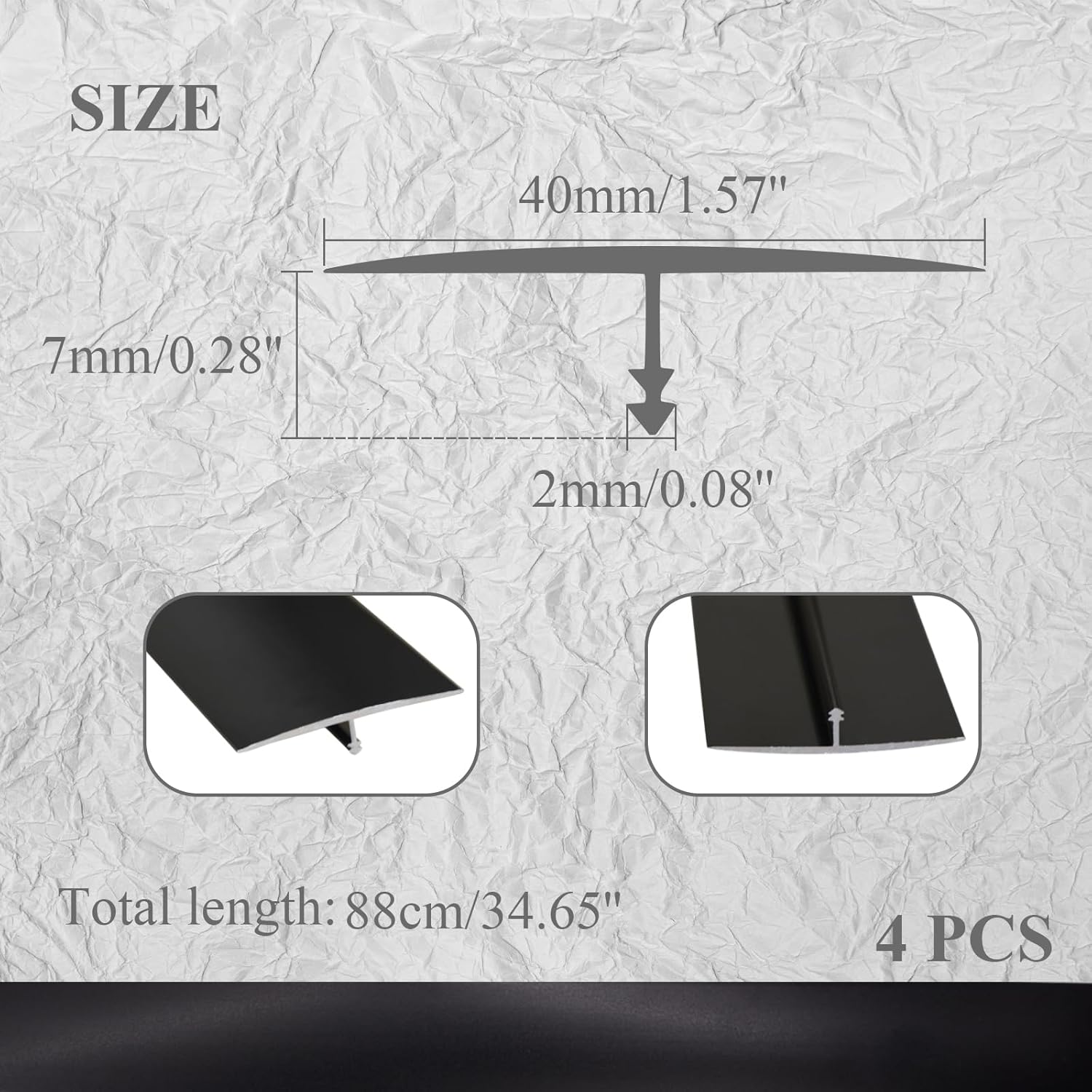 T Molding floor transition strip made from high-quality aluminum alloy, these strips offer exceptional durability, standing up to heavy foot traffic and resisting wear over time. Installation is quick and hassle-free, requiring no specialized tools, fasteners, or drilling—simply cut the strips to fit your specific application needs. This size ensures comprehensive coverage for most standard doorways and thresholds. How to Use Measure Installation Length. Cut the length you need with a hacksaw or electric saw. Apply strong adhesive to the t molding (glue not includes). Press firmly to the ground to make it secure. Wipe off the excess glue. Waterproof and moisture-proof, wear-resistant, fadeless, rust resistant, high compression resistance.