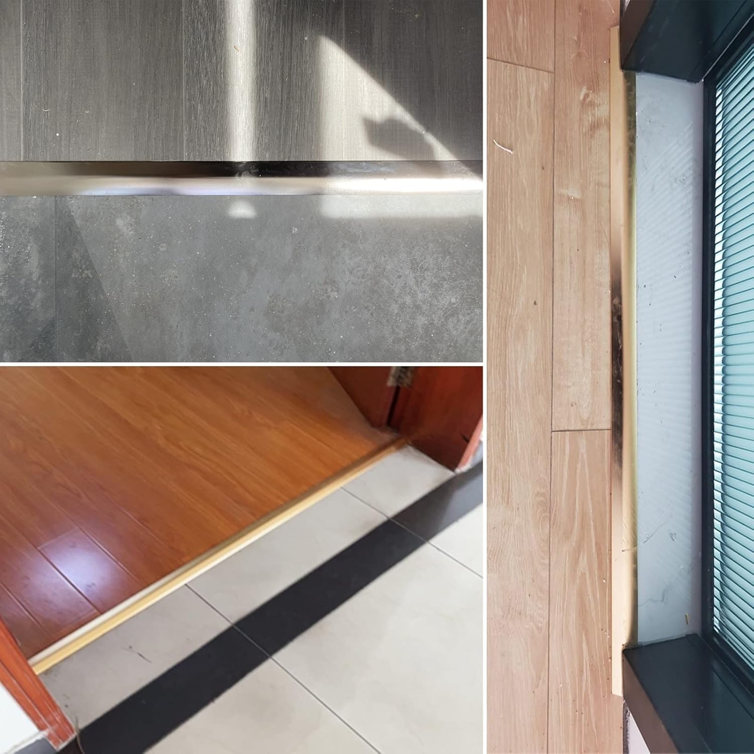 Are you still troubled by the vinyl floor and tile seam in your life?✔8 major features to satisfy you:❶T mold reducer aluminum surface is anodized to make it waterproof, rust and fade resistant❷Easy to install, no drilling required, no damage to the floor (excluding glass glue)❸Perfectly connects two uneven surfaces & highly similar surfaces❹Matte finish matches your inspired vision for your home or office❺Suitable for various surface joints: Flooring/tile/laminate flooring/wood floor/carpet/vinyl/concrete floor etc.❻Internal exterior use: suitable for deck/ Entry/ above ground pool, and indoor gym/ bathtubs/ ramp/ Walkers Entry/around pool, etc.❼Can also be used on RV, travel trailer, camper or wall/cabinet decoration and as a Robot Vacuum Ramp❽It can be installed on any doorways, room entryways or two different flooring surfaces to cover any gaps that may be visible.✔Tips: The width of the gap that can be filled by the transition strip is only the width of the transition strip itself, and the filling width is not suitable for gaps larger than the width of the transition strip you purchased. Please you must measure the width of the filling gap✔Specification▶Material: metal aluminum▶Installation tool: glass glue▶Size: 50cm/70cm/90cm/100cm/110cm/120cm/130cm/140cm/150cm/160cm19in/27in/35in/39in/43in/47in/51in/55in/59in/63in▶Width: 3.3cm(1.3in)▶Thickness: 1.7mm(0.07in)▶Height: 0.7cm(0.27in)✔Include: 1x T Molding Floor Transition Strips
