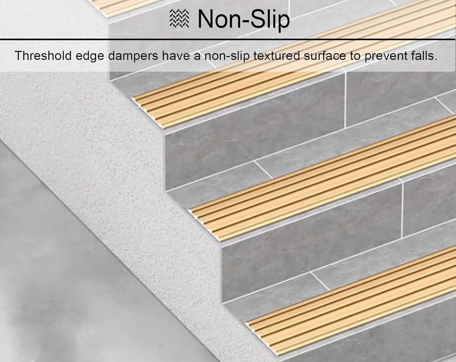 Floor Transition Strip Edge Strip Cover Trim Transition Bar Threshold Divider Strip rampOur floor transition strips can adapt to different decoration styles, connect floor gaps, and you and your family!Packing List:- 1x Transition StripSpecifications:- Material: Aluminum Alloy- Length: 90cm (35 3/8")- Width: 40mm (1 5/8")- Thickness: 2.7mm (1/8")Features:- Made of metal, sturdy and .- Wider and thicker, not easy to deform.- Non-slip texture design s tripping.- Easy to install, clean and maintain.- Complete specifications and multi-color options.