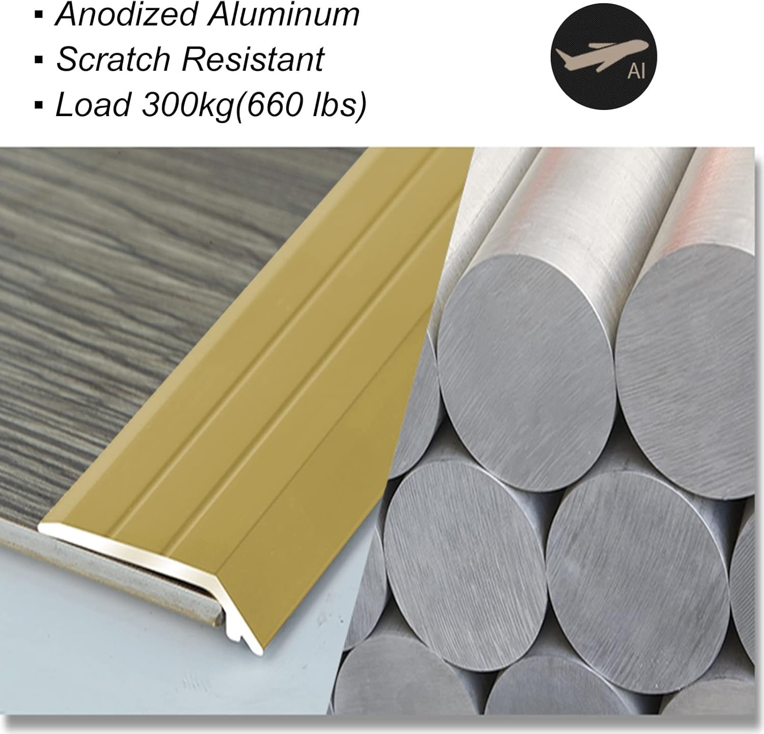The carpet trim easily covers a seam or gap between two flooring surfaces of unequal height. For use in doorways, room entry ways or other locations where two uneven flooring surfaces meet. Specification: - Material: Aluminum - Width: 2.5cm/0.98 inch - Connects to uneven floors up to 2-5mm/0.08"-0.2" in height difference - Length: 80cm/90cm/95cm/100cm/105cm/110cm/115cm/120cm/125cm/130cm/140cm/145cm/150cm - Contents: 1 × Floor transition strip (The matching product in the product image is not included in the package) Feature: - Low-profile design prevents trips and falls. - Was not glue included. Not to slip when wet. - Excellent for finishing in home, office or commercial. - Carpet trim gives your flooring a clean edge where prevents carpet edges from fraying. Tips: - Manual measurement products may have dimensions of a few centimeters of difference, please understand. - There may be some differences between the image and the product due to display and lighting reasons, please refer to the actual product.