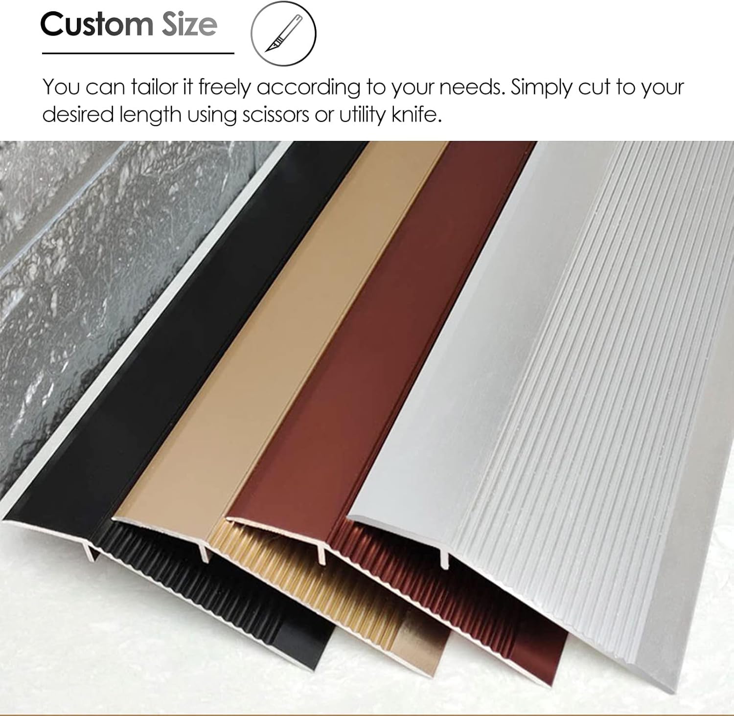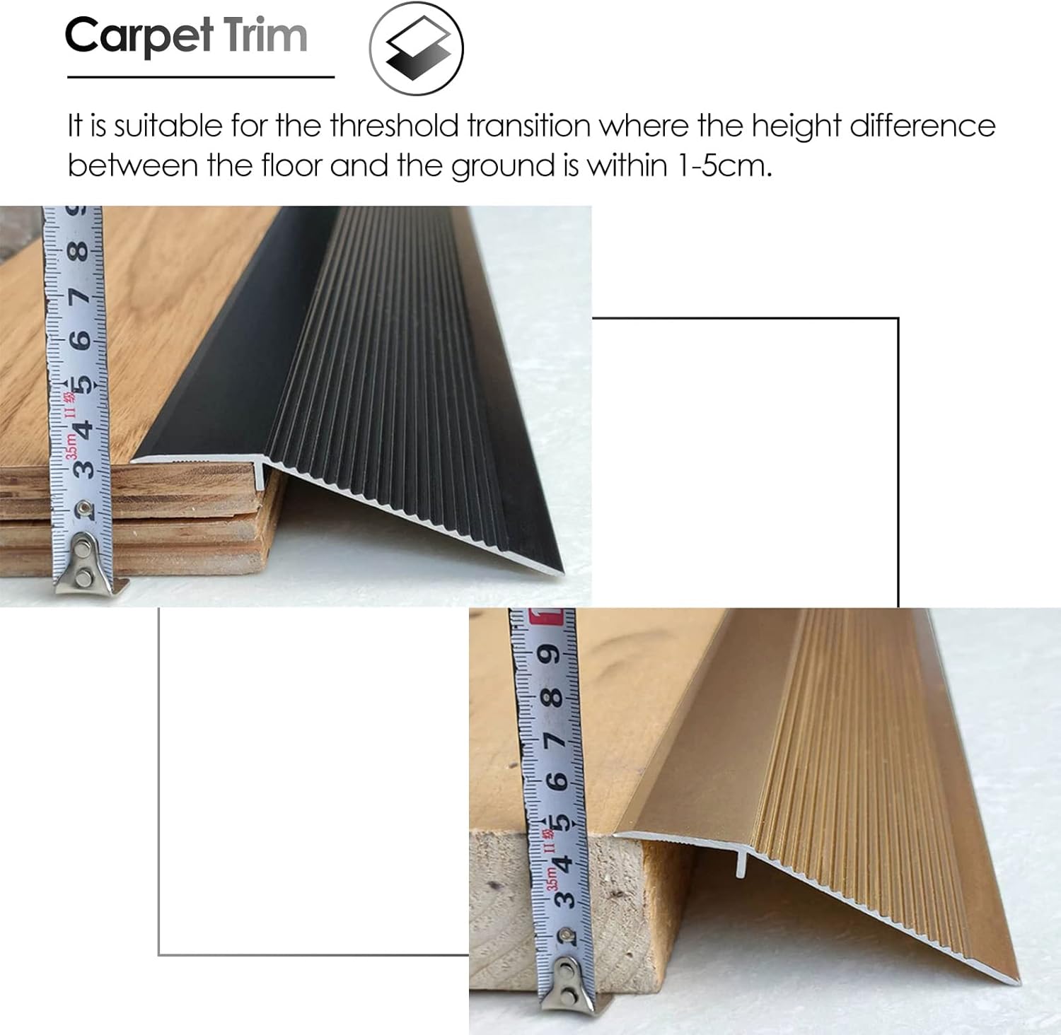 The carpet cover easily covers a seam or gap between two surfaces of flooring of different heights. For use on doors,room entrances or other places where two uneven floor surfaces meet. Specifications: - Material: Aluminum - Width: 10cm/3.93in - Connects to floor unevenness up to 1-4cm/0.4 "-1.57" in elevation - Contents: 1 × floor transition strip (the corresponding product in the product image is not included in package) Feature: - Low profile design prevents tripping and falling. - Glue was not included. Will not slip when wet. - Excellent for finishing around your home,office or business. - The carpet cover gives the floor a clean edge that prevents the edges of the carpet from fraying. - Suitable for passing the threshold between carpet and floor tiles,floor-carpet,carpet-floor and decorations for trimming edges. Tips: - Manual measurement products can be a few centimeters in size of difference,please understand. - There may be some differences between the picture and the product due to display and lighting reasons,please refer to the actual product.