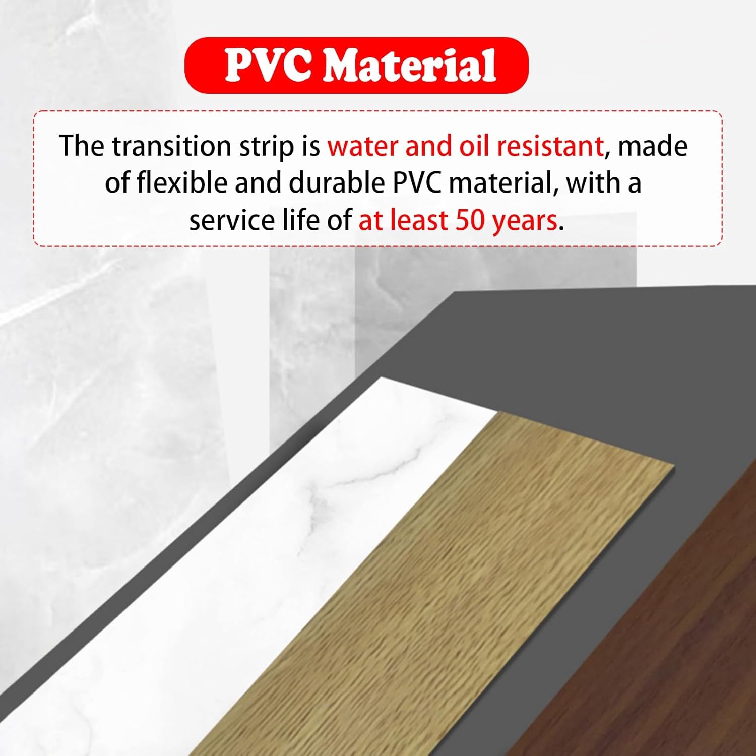 ✅ DescriptionWith its durable build and easy installation, our transition strips for uneven floors are a practical solution for protecting the edges of your flooring surfaces or carpets. . Whether you're looking to upgrade your residential or commercial space, our transition strips offer a reliable and cost-effective way to ensure the longevity of your floors.✅ Features-- Durable material, resistant to dirt and waterproof.-- Strong adhesion, easy to cut.-- Applicable to floor tile seam joint covering, floor to floor, tile seam joint covering.-- Make sure the installation area is dry.-- Please do not install on uneven floor, wet floor and dusty wall.✅ Specification-- Length: 90cm/35.4in/3ft-- Material: PVC-- Width: 40mm-- Thickness: 3mm✅ How to installFirstly, measure the required length in advance and then freely cut to your custom length. Secondly, tear off the red backing tape and place it to a suitable position. Finally, stick firmly on the floor.✅ Package Includes-- 1 x Floor Transition Strip Self Adhesive✅ Note-- Please measure the required length before installation and then cut it.-- Because it is processed by hand, the finished product usually has an error of 1-3 mm, please understand.