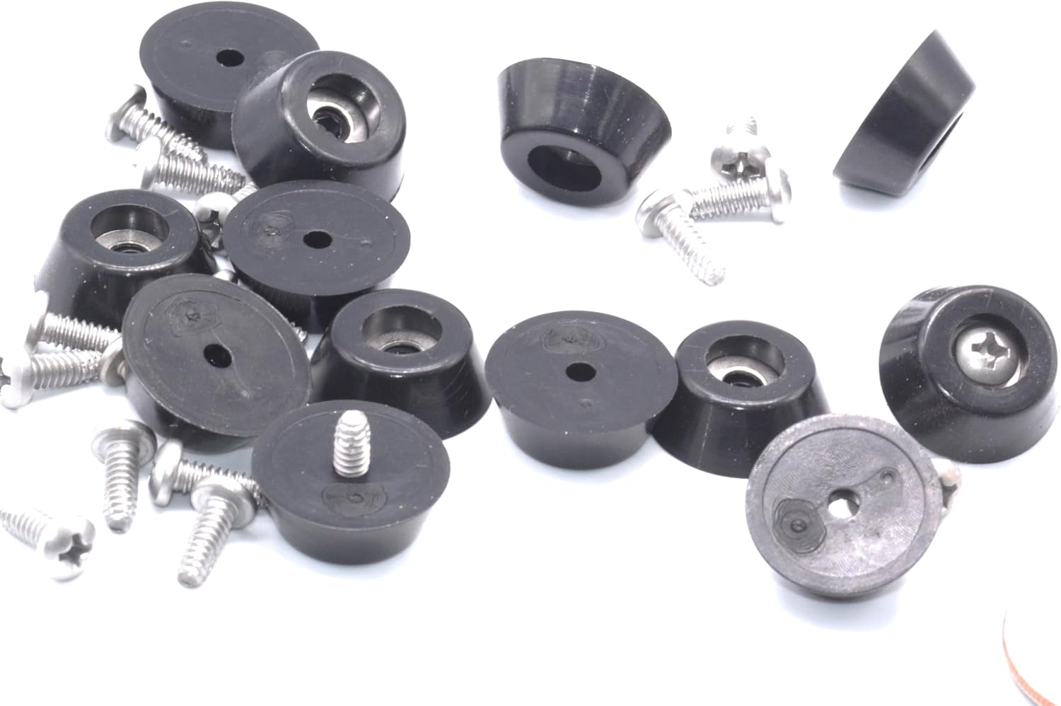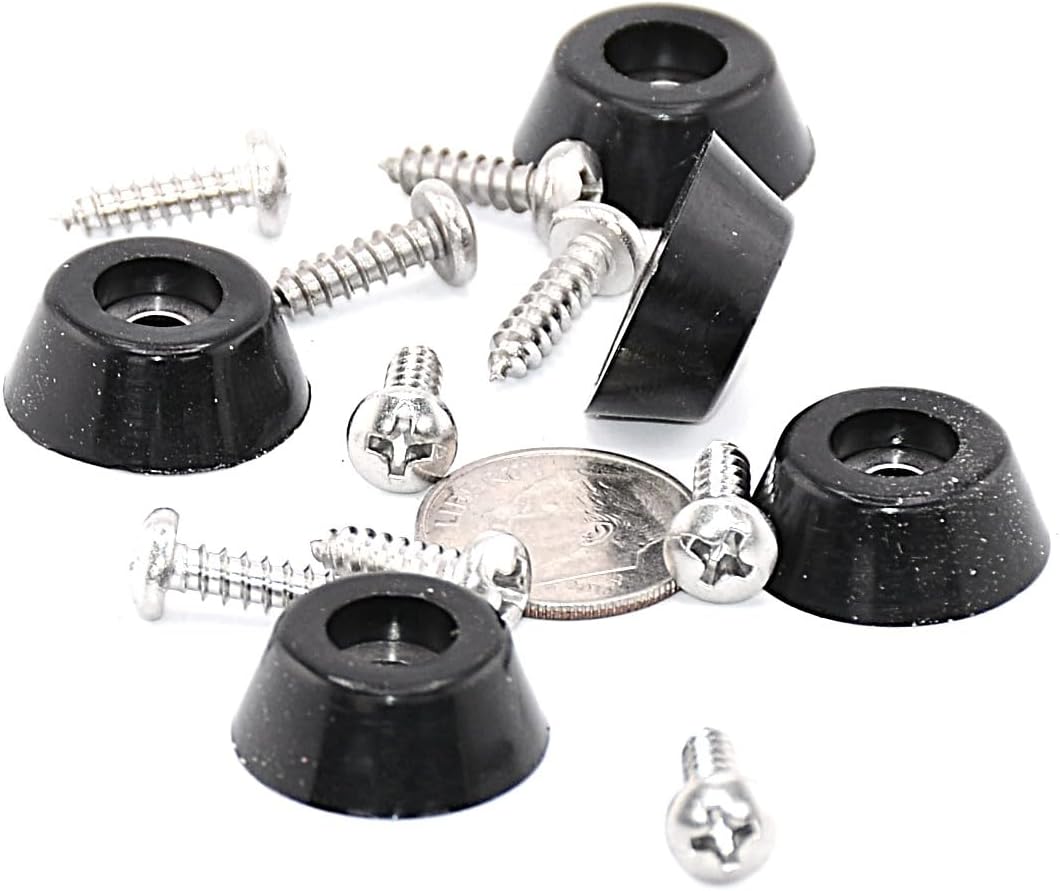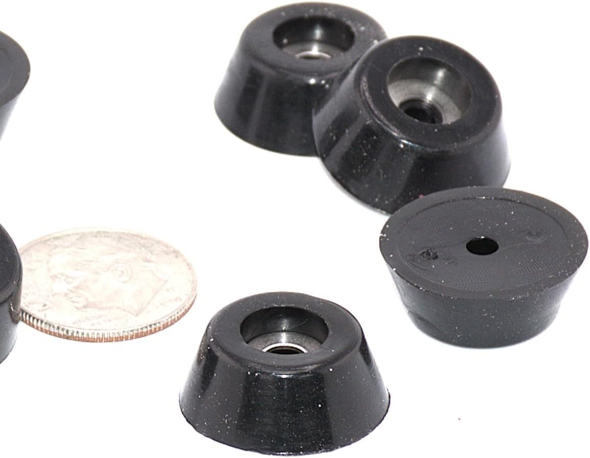 3/4” Diameter x 1/4” Height Tapered Rubber Foot Ideal for Vintage Electronics, Small Speakers, Clocks, Antiques, Wooden Chairs, Desktop Instruments Steel embedded washer for additional strength Recessed Rubber Feet Rubber Bumpers Rubber Spacers Specifications: Top Diameter: 3/4” Height: 1/4" Screw Hole Diameter: .220 Recessed Diameter: .340 Durometer: 87 on Shore "A" scale Molded (TPR) Thermoplastic Rubber Accepts #4 Screw Key Features: Premium quality thermoplastic rubber feet with steel washer. Non-scratching, non-marring material. Resistant to cracking or hardening. Temperature Resistant Elastomer. Applications: Amps & Speakers Appliances Audio & Video Equipment Automotive Bumpers Cabinets Construction equipment Eico Electric motors Electronics Exercise equipment Furniture HeathKit