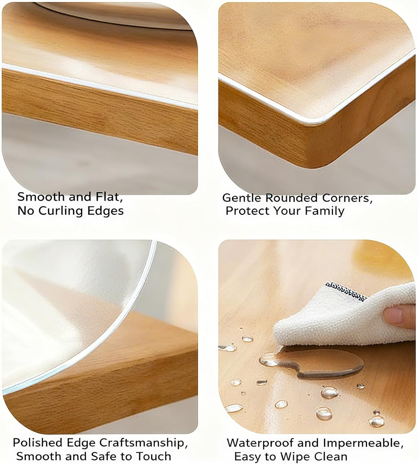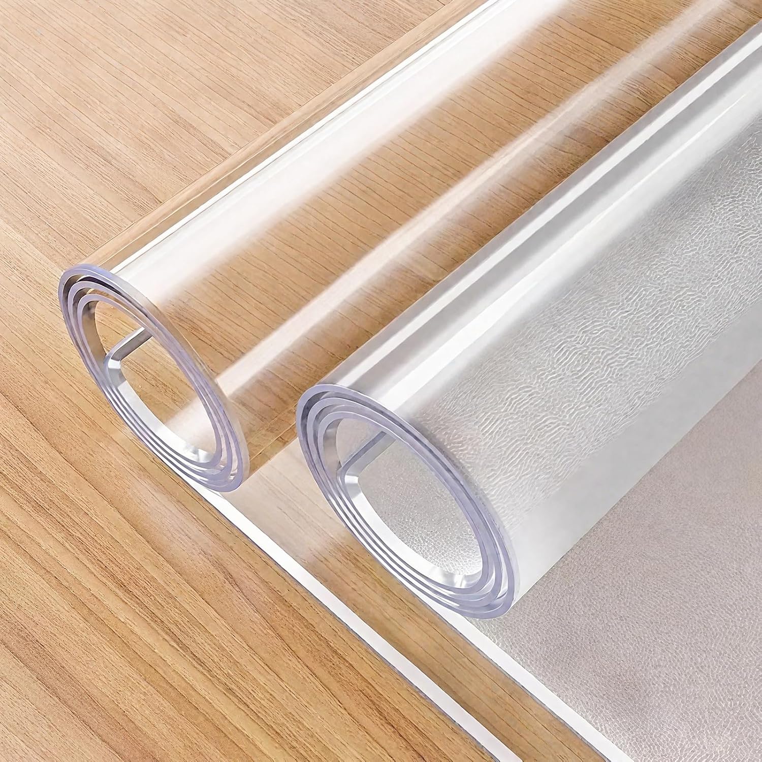 table protector is made of new Low-Flavor Formula material, which just has a slight smell. When you get this item, you can take a plate of warm water, add laundry detergent, soak the table protector for 5 minutes, then wash it and let it dry outdoors for a day or two. After that the smell will basically disappear and you can use it normally.HOW TO CHOOSE THE RIGHT SIZE MODEL?Use a Measuring Tape to accurately measure the width and length of your tabletop, then find the corresponding size model from our Listings. (“Width X Length” Inches)Cut to FitIf we do not have the right size or are just out of stock, you can also choose a larger size to DIY. It‘s easy to cut, you can mark the exact measurement with a pencil and use a sharp scissors or knife to cut.Clear Table ProtectorHigh transparency, showing theoriginal nature of the desktop.But there will be bubbles orwatermarks in contact with asmooth desktop, which is moresuitable for a textured desktop ordirectly on the tablecloth.New FrostedRelatively low transparency,hazy and textured, suitablefor all desktops. One side isfrosted and the other side issmooth, please place smoothside up and frosted sidedown.SpecificationsShape: Rectangle, SquareThickness: 2mm, 3mm.Material: PVC, Upgraded version of odorless PVC.Color: Clear, Frosted.Package Content1 x Clear Desk Cover Protector