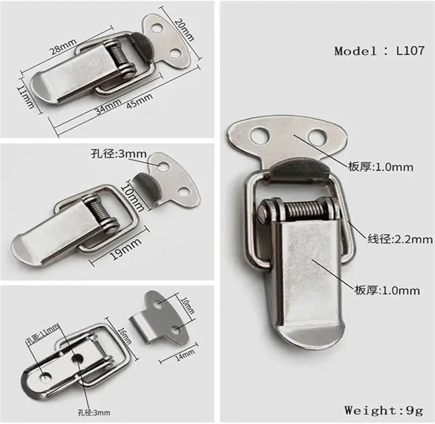 ate LocksHasp Catch Duck-Mouth Buckle Stainless Steel Iron Hasp Latch Spring Lock Clasp For Various Box Drawer 1Pcs==========is_customized : YesModel Number : 107DIY Supplies : ELECTRICALOrigin : Mainland ChinaMaterial : Iron Nickel ,201 Stainless Steel,304 Stainless Steel