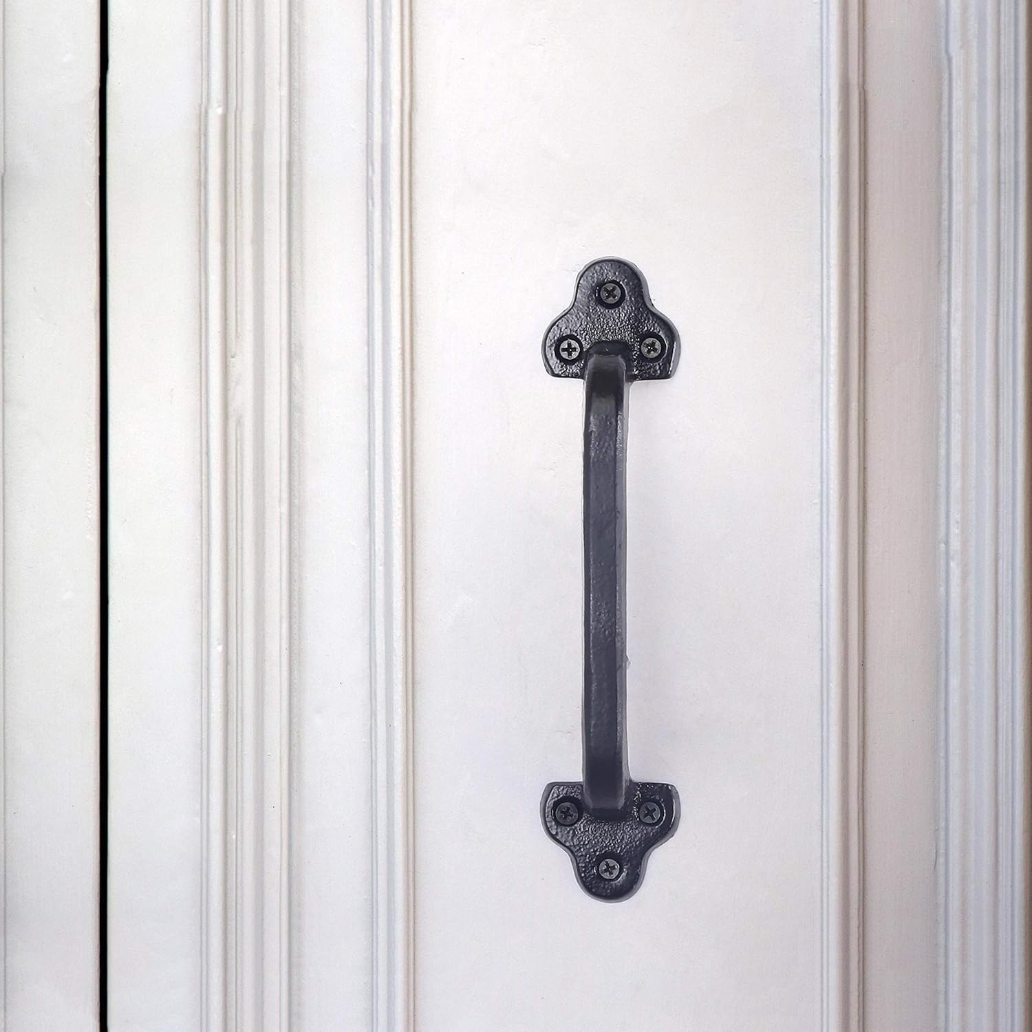 Dseap Heavy Duty Rustic Barn Door Handle, Gate handle Grab Material: Cast iron Color: Black Dimension: Overall Length: 9 inches, Projection from door surface: 1-3/8 inches Package Includes: 2 * Dseap Barn Door Handles and Pulls Application Scope: The pull handle is perfect for barn door, garage door, shed door, screen door, wooden fences gate, cabin, and more.