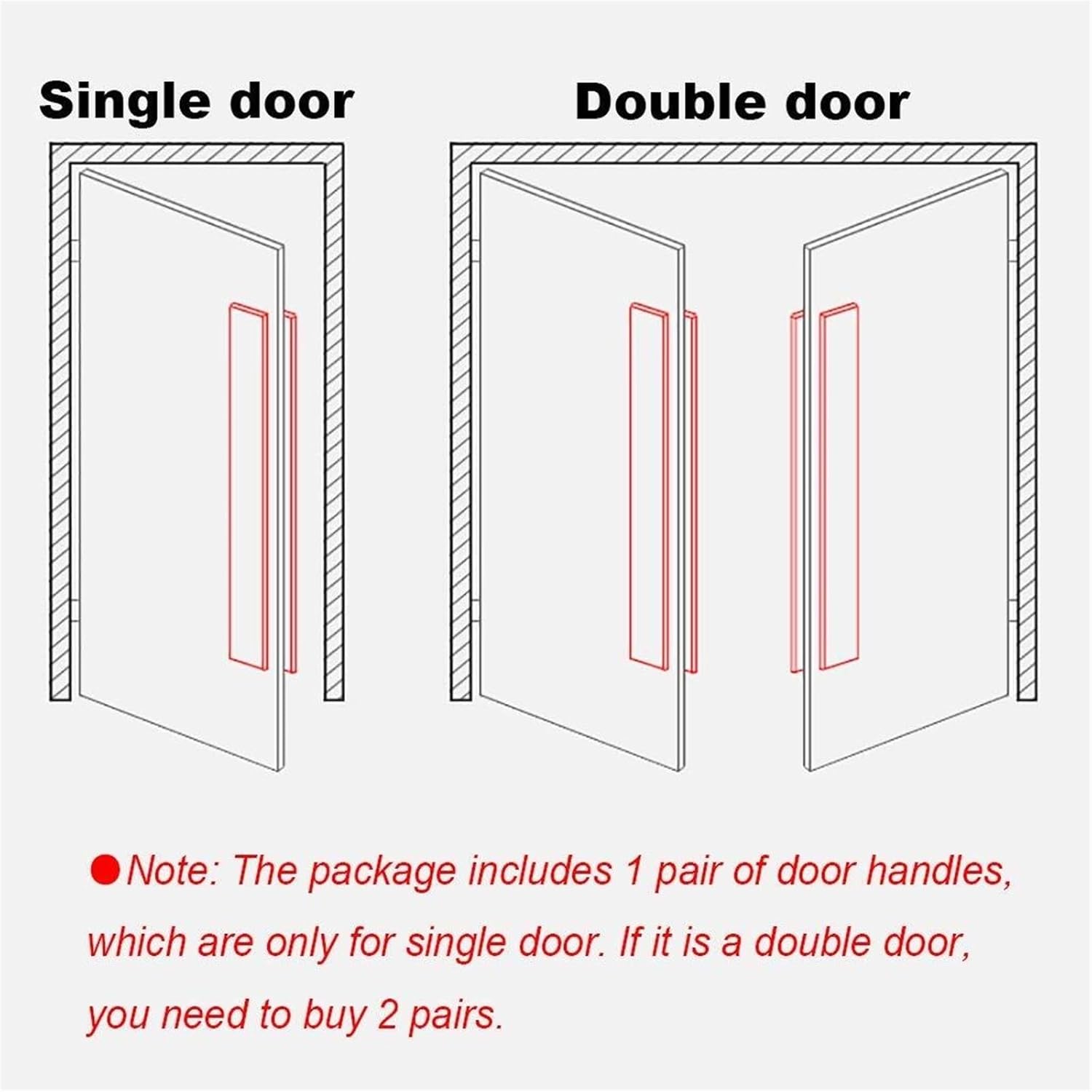 Name:Door handleStyle:stylish and simpleMaterial:304 stainless steelSurface treatment:brushedApplicable door types:glass door,wooden door,sliding door,framed doorApplicable space:home,hotel,office,shopping mall,villa,KTV,clubPackage includes:1 pair of handles(only for single door)Installation method:drilling installation,screw fixingSize:(pipe diameter × total length × hole spacing)38 × 600 × 400mm,38 × 800 × 500mm,38 × 1200 × 900mm