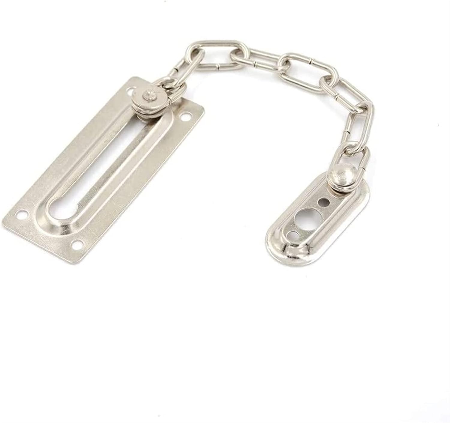 The surface of the chain lock is smooth and shiny, not easy to scratch or fade, comfortable to touch, and safe to use.Anti theft steel chain can enhance security and provide reliable intrusion protection, spring buttons to enhance protection, and can not be unlocked outside, thus making you more secure.Material: stainless steelColo: SilverIdeal for locking a house or an apartment.Package included:1 x security door chain Note:Please allow 1-3cm errors due to manual measurementItem color displayed in photos may be showing slightly different on your computer monitor since monitors are not calibrated sameIf you have any questions, please feel free to consult our customer service