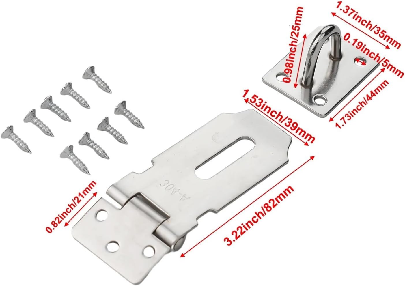 Easy Installation: Designed for quick and hassle-free installation, our latch comes with screws, making it easy to upgrade your security systemFeatures: *Made from high-strength stainless steel, this padlock offers exceptional rust resistance and durability. It has significantly improved hardness, service life, and safety performance, ensuring your safety. *The door latch is crafted with precision, featuring a brushed finish for a smooth texture. It is constructed using sealed welding technology and equipped with a reinforced base, making it resistant to breakage and deformation, providing a reliable and stable user experience.* The heavy-duty door latch lock provides a practical security solution, suitable for various doors, cabinets, storage sheds, drawers, storage cabinets, pet fences, toolboxes, and more. Specifications: Size: 3 inches Color: Silver Package Contents: Lock latch and screws Notes: 1. Due to manual measurement, different measurement methods, and tools, there may be slight size deviations. 2. Images may not accurately reflect the actual color due to lighting, angles, and display differences.