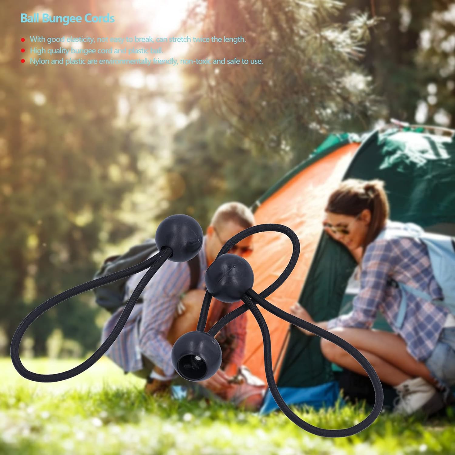 These Ball Bungee Cords offer excellent elasticity and strong fastening for tents, tarps, canopies, and sleeping bags. Each cord stretches up to twice its original length, providing dependable support for outdoor or household use.Made from nylon and plastic, the bungee cords are non-toxic, environmentally safe, and reusable. Their simple design allows easy installation, removal, and repositioning, making them highly practical for various tasks.Whether securing an exhibition tent, camping canopy, or personal items, this set of 20 ball bungee cords ensures sufficient coverage and convenience for your outdoor projects.SpecificationsItem Type: Ball Bungee CordsMaterial: Nylon + PlasticProduct Color: BlackProduct Weight: Approx. 247g / 8.7ozApplication: For exhibition tents, camping tents, tent accessoriesPackage Contents20 x Ball Bungee Cords