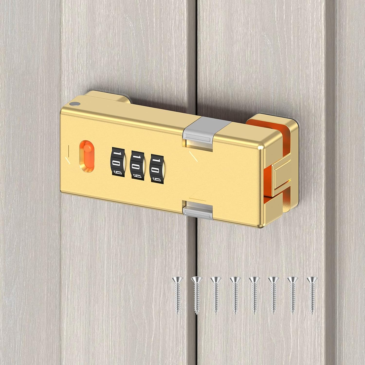 YogePote 90/180 Degree Keyless Combination Cabinet Lock, 3-Digit Mechanical Password Ajustable Door Latch for Sliding Barn Door, Storage Cupboard, Office Locker - Security Zinc Alloy Locks