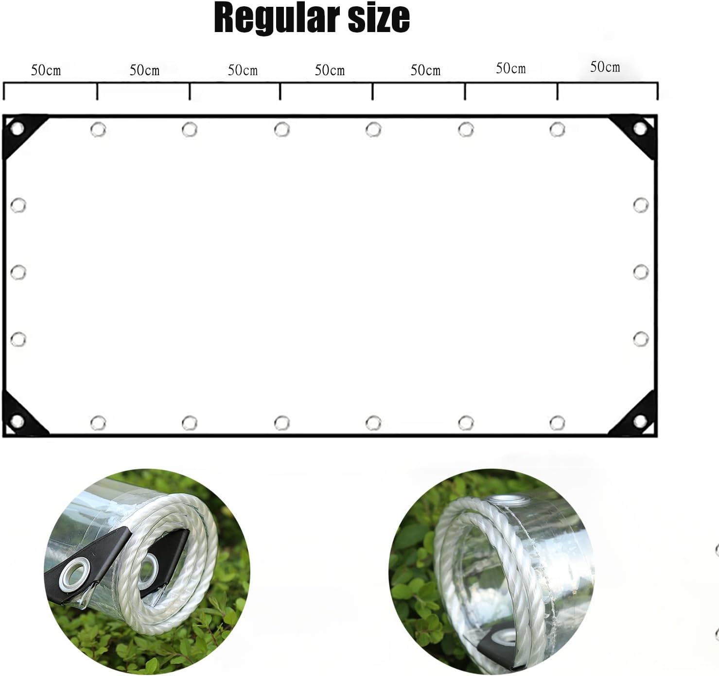 Specifications: Name: PVC transparent tarpaulin Color: transparent(99.99%) Weight: 450g/square Thickness: about 0.35mm hole spacing: about 50cm.(19.6in) Material: PVC (plastic material) Features: No discoloration in the sun, strong tensile strength, waterproof, moisture-proof, sunshade, anti-aging, long product life Product use: widely used in trucks, cars, cargo ships, stations, ports, warehouses for storing sundries, crop canopies, fishery breeding Package Contents: 1 x Outdoor tarpaulin Notice: 1. For the size Tarpaulin, There is consumption in the production process,about 10~20cm, the Actual size is the finished product size, please understand that 2. Cleaning method: Wipe with soap cloth or wash with warm water, but do not use machine cleaning.