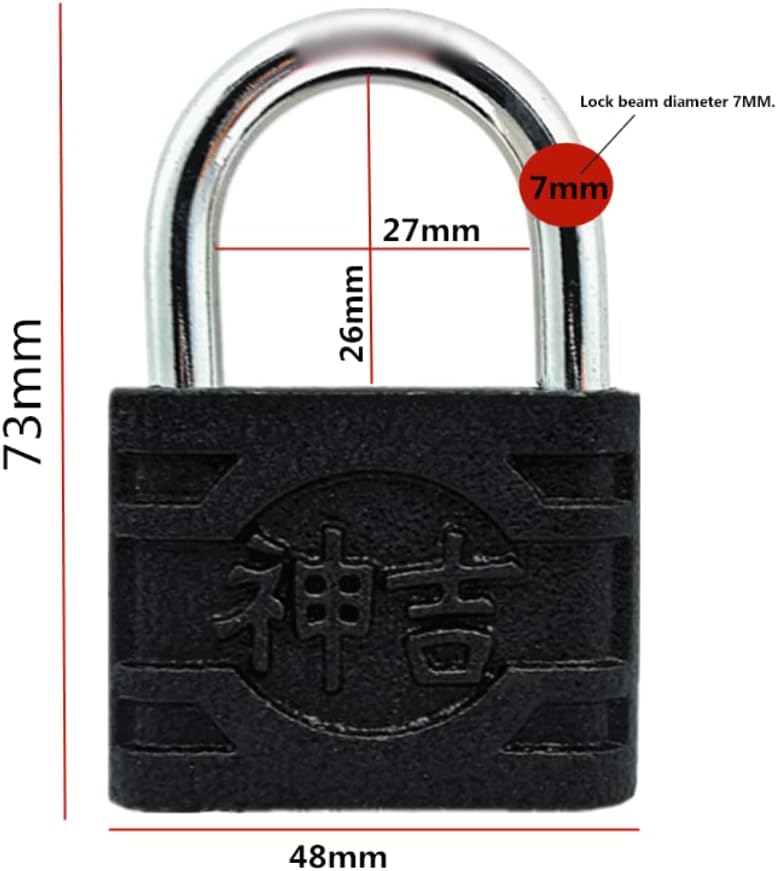 For indoor and outdoor use; ideal to secure storage units, fences, garage, doors, cabinets and more.name: padlockMaterial: IronSize: 73MMx48MM, lock hook diameter 7MMWidely used:Padlock great suitable for door locks,large warehouse, storage units, garage, cabinets ,garden shedand more.If you have any questions after purchasing and using the product, you can contact us at any time. We are online 24 hours to solve your.
