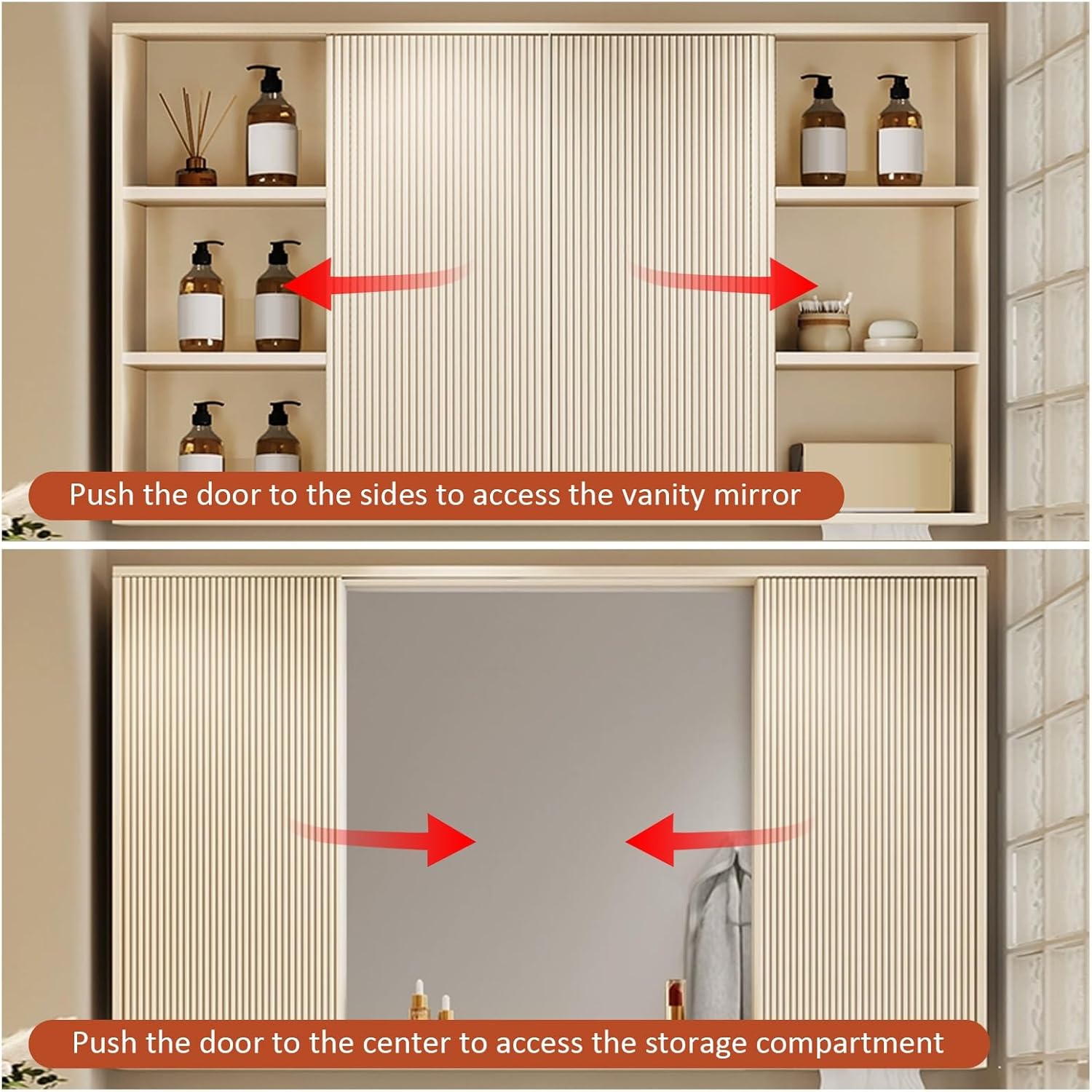 This bathroom cabinet with mirror is made of eco-friendly multi-layer solid wood panel, with a natural and delicate surface, waterproof and moisture-proof, and can be used for a long time even in a humid environment. The wall mounted bathroom cabinet combines everyday functionality and multi-layer space, making it a practical choice for morning makeup. The hole for the paper is cleverly designed for easy insertion of paper products and for drying wet hands. The sliding door design is convenient for taking and placing items, saving space, making it a reliable choice for compact bathrooms Specifications Name: Bathroom Mirror Cabinet Material: Eco-friendly multi-layer solid wood board Size: 65*15*80cm/25.6*5.9*31.5inch, 75*15*80cm/30*5.9*31.5inch, 85*15*80cm/33.5*5.9*31.5inch, 37.4*31.5 inch, 37.4*31.5 inch 5.9*33.8cm/37.4*5.9*31.5 inch, 105*15*80cm/41.3*5.9*31.5 inch, 115*15*80cm/45.3*5.9*31.5 inch, 125*15*80cm/45.3*5.9*31.5inch In 49.2 in *5.9*31.5 inch Box contents: 1 x Bathroom Mirror Cabinets (This product only sells mirror cabinets for the bathroom and does not include products other than mirror cabinets for the bathroom shown in the product image) Helpful Tips: 1. Due to manual measurement, there may be 1 ~ 3 cm error. 2. Due to many reasons, such as shooting light and display, the color may be different from the actual color