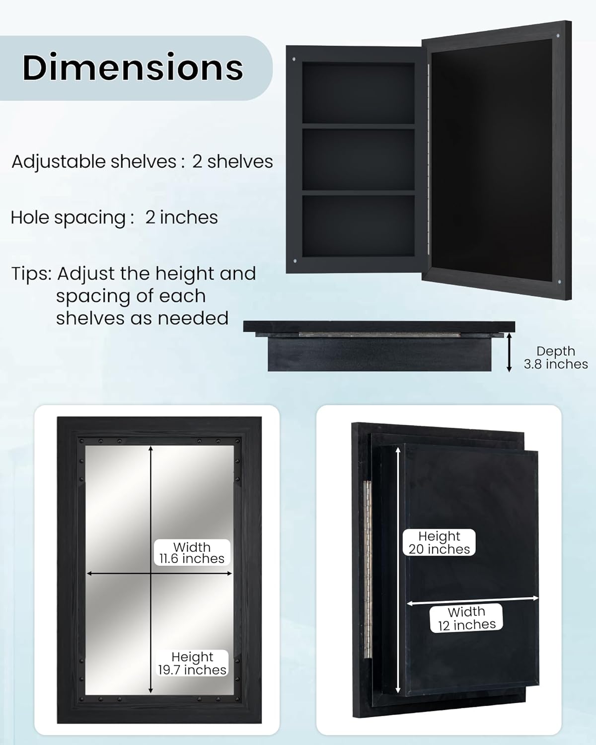 | Included Components | Hardwares, Medicine cabinet |