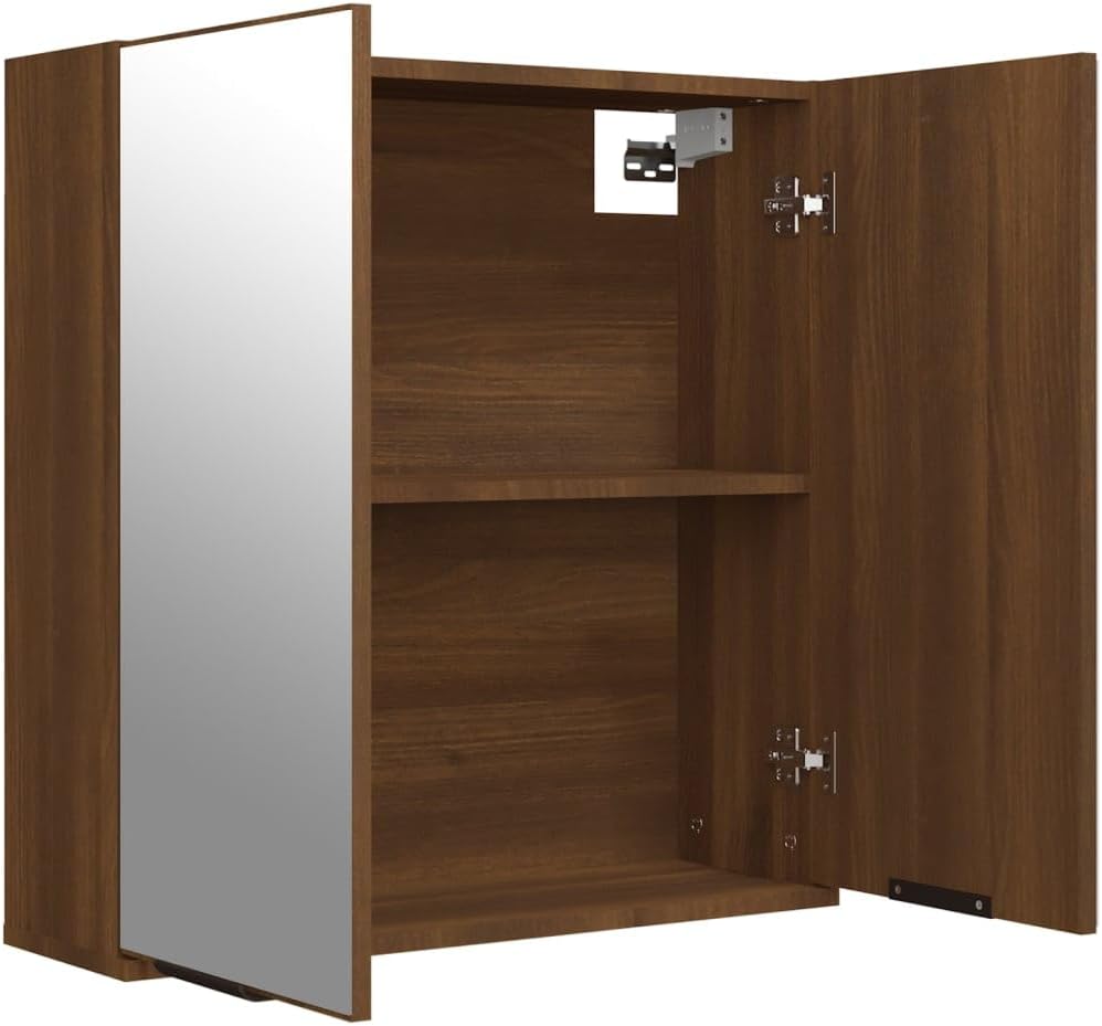 The stylish bathroom mirror cabinet offers space for all your things and impresses with its modern look. Sturdy material: wood material with its smooth surface is a material of high quality, which is characterised by strength, stability and plenty of storage space: this bathroom furniture offers plenty of storage space for your bathroom utensils behind two mirror doors. Simple design: thanks to its clean lines and elegant design, this mirror cabinet blends harmoniously into your bathroom. Note: screws and dowels for wall mounting are not included. Find and use the screws and dowels suitable for your walls. If you are unsure, seek professional help. Read and follow each step of the instructions carefully. Each product comes with assembly instructions in the packaging for easy installation. Colour: brown oak look. Material: wood material, acrylic. Dimensions: 64 x 20 x 67 cm (W x D x H). Maximum load capacity (total): 60 kg.