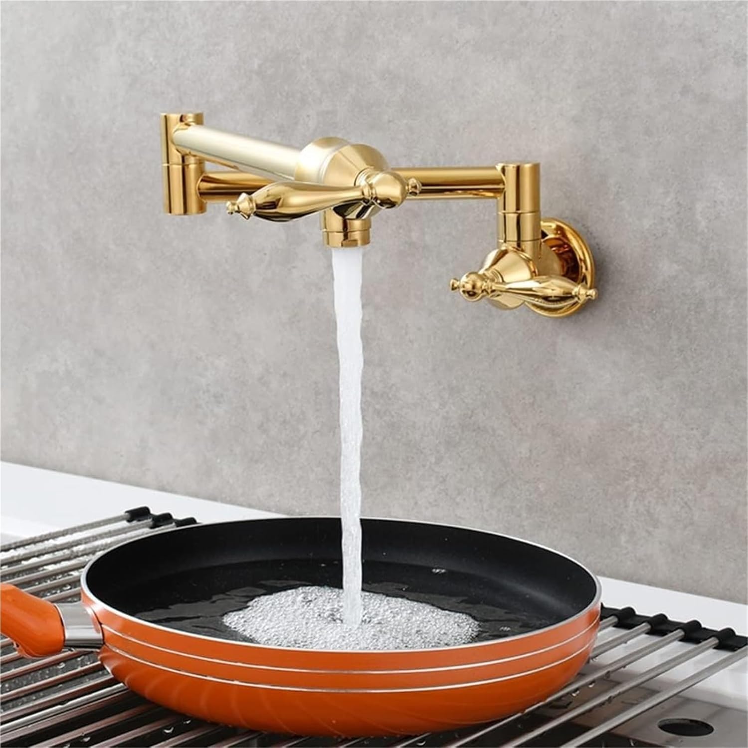 Name: Kitchen Faucet : Contemporary Feature: Folding, Stretchable, Double Joint Swing Arm Material: Solid BrassValve Core Material: Ceramic Cartridge Life Time: 500,000 cycles Water Feature: Single Cold WaterWater Mode: Bubbler water Installation Method: Wall-Mounted Number of Handles: Double Number of Holes: One HoleNotes:1. Please allow slight differences due to manual measurement.2. All pictures are taken in kind,but due to differences in light and screen resolution,there may be slight color differences between the real thing and the picture.3. Our brand is always pursuing ion as the top of priority. We are glad to receive more suggestions from our s, if have problems, we will process request from with.