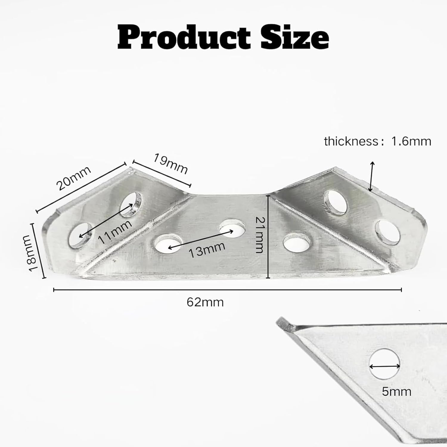 Bring unparalleled stability to your projects with our robust Corner Braces. Our meticulously crafted Corner Braces ensure your projects are not just stable, but flawlessly aligned. Perfection in every joint! From reinforcing furniture to securing cabinetry, our Corner Brackets are the ultimate companion for all your creative endeavors. Their versatility makes them a must-have in any toolkit.Effortless installation, lasting stability! Our Right Angle Brackets with pre-drilled holes simplify your DIY process, making strong connections easier than ever. Simply position, drill, and secure – it's that easy!Combine strength with style! Our sleek, rust-resistant Corner Braces protect and enhance your projects, ensuring they stand the test of time in both durability and design.
