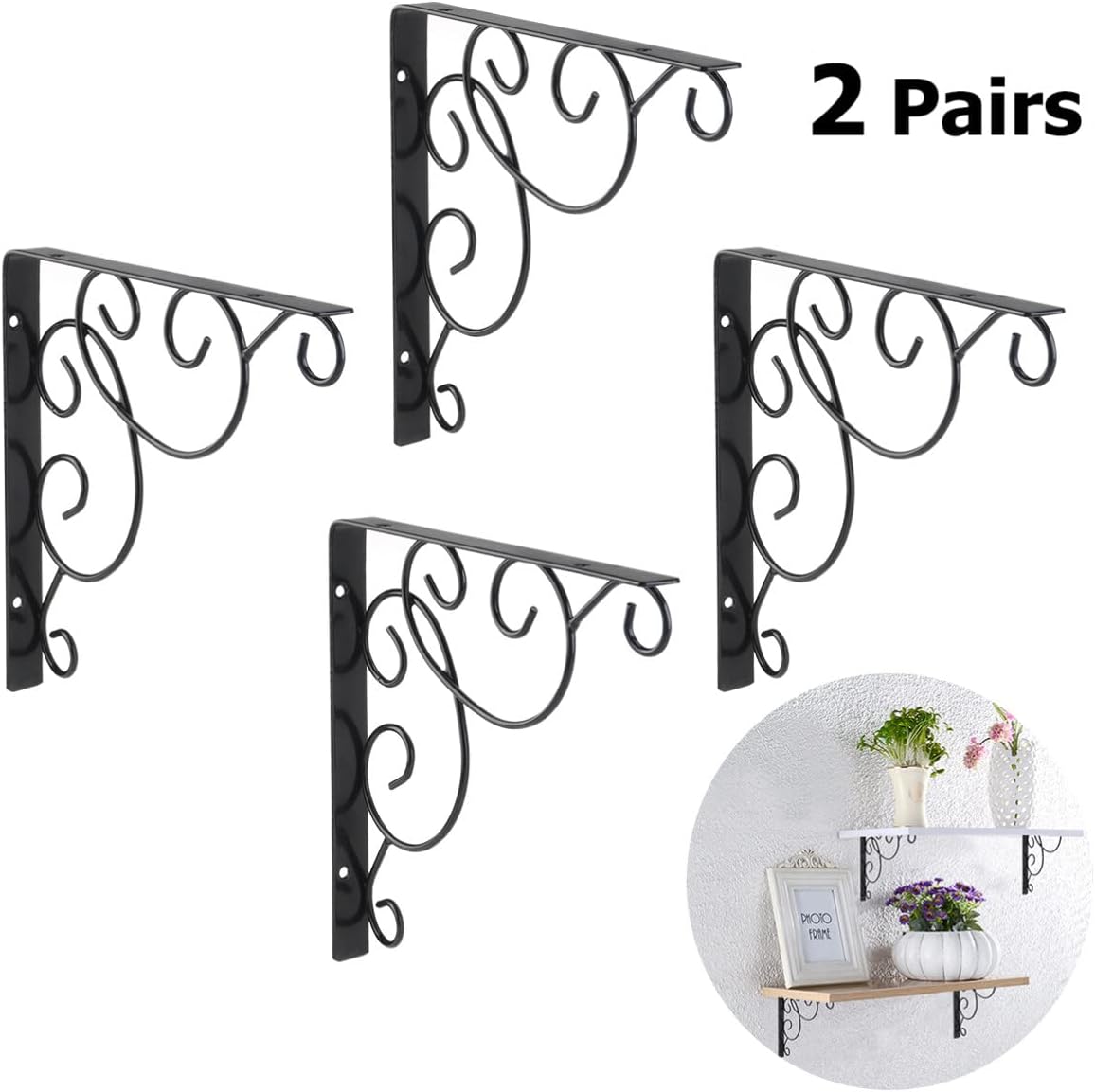 WINOMO Iron Shelf Brackets 7.87 Inch, Decorative Wall Mounting Brackets for Shelves, Floating Shelf Hardware, Metal Corner Holder for Wood, Floral Rustic Industrial Style (Black)