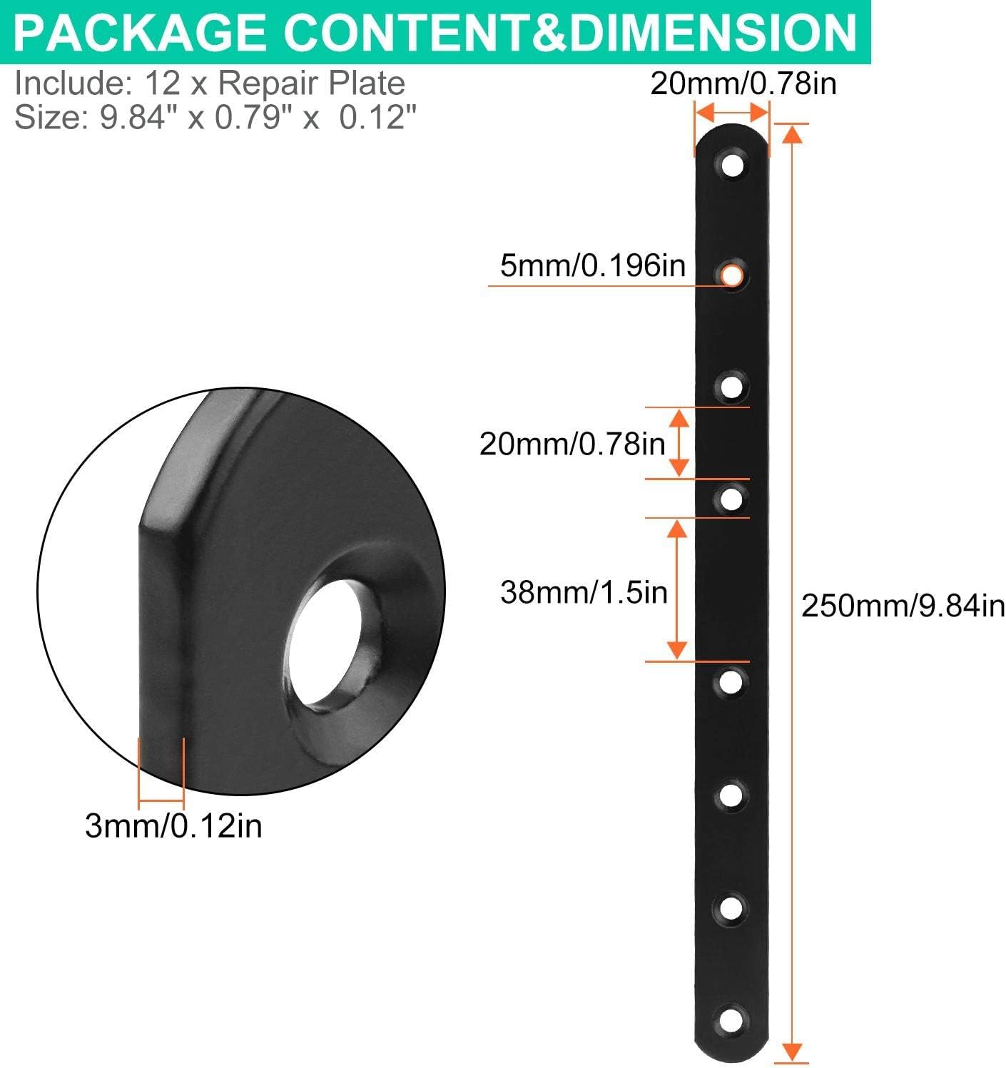 | Item Type Name | 10?Heavy Duty Flat Straight Brackets, Black Metal Mending Plate for Repairing Wood Furniture Dresser Shelf Bed Table, Fixing Furniture Fastener Hardware |