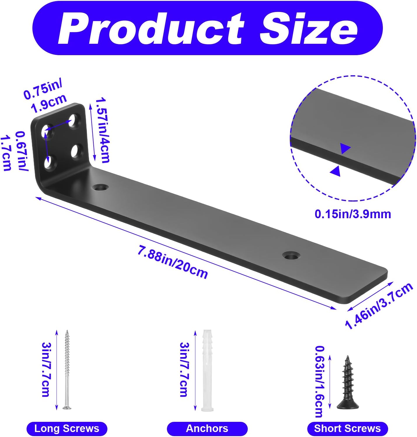 ✔ Great Stability: Engineered with a standardized 90-degree angle to ensure your shelves sit perfectly level, preventing items from tipping and providing a secure, reliable foundation for your belongings.✔ Effortless Installation for All: Achieve professional results even as a DIY beginner. The included comprehensive hardware and straightforward design allow for quick and easy mounting, getting your shelves up and ready in no time.Specifications:Material: IronProduct Size: 7.88” x 1.46” x 1.57”Quantity: 6 PackColor: BlackIncluding: 6 Pcs x shelf brackets24 Pcs x long screws24 Pcs x anchors12 Pcs x short screwsNote:Manual measurements may have slight variations.Color may appear slightly different due to lighting and screen settings.