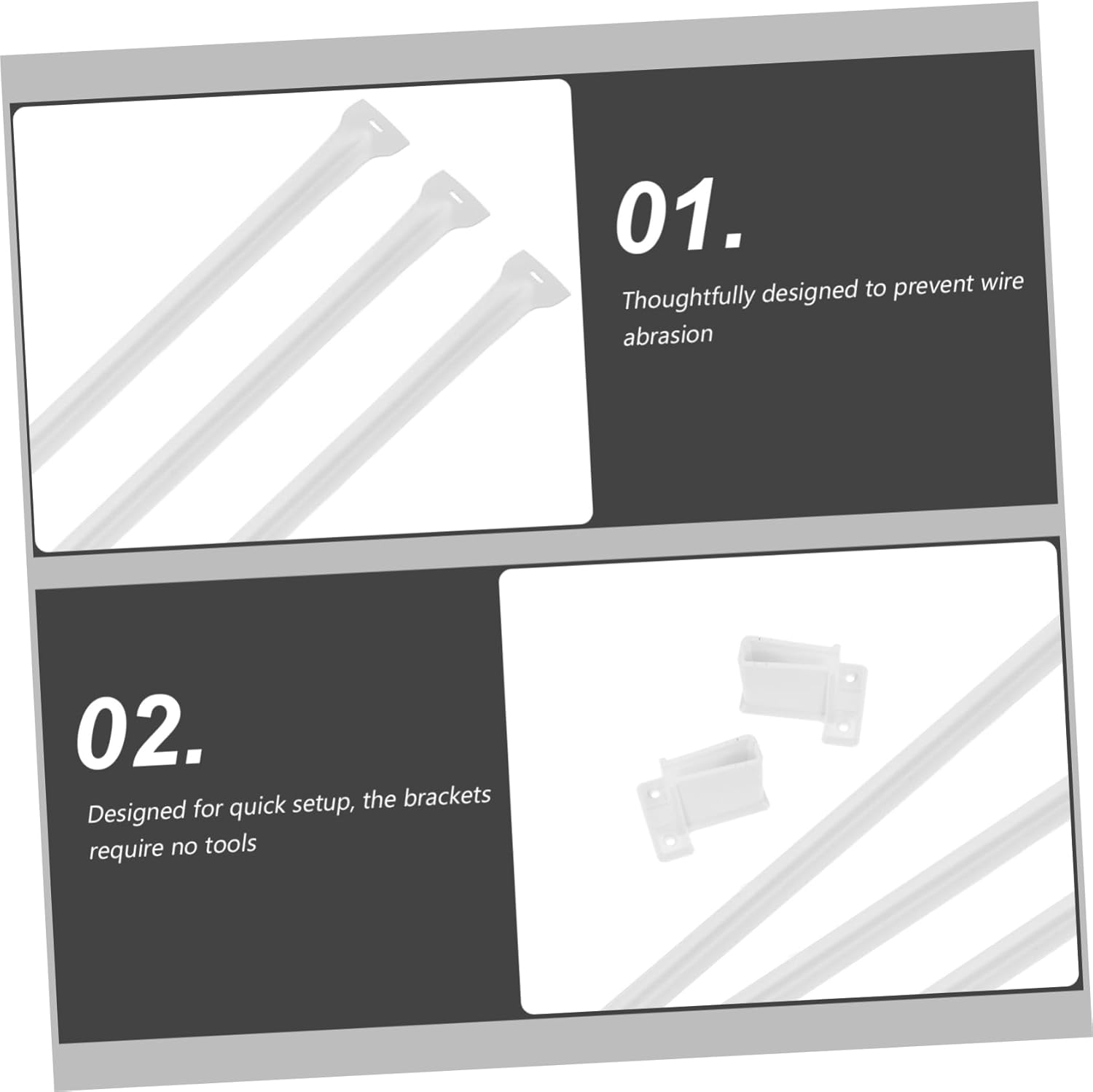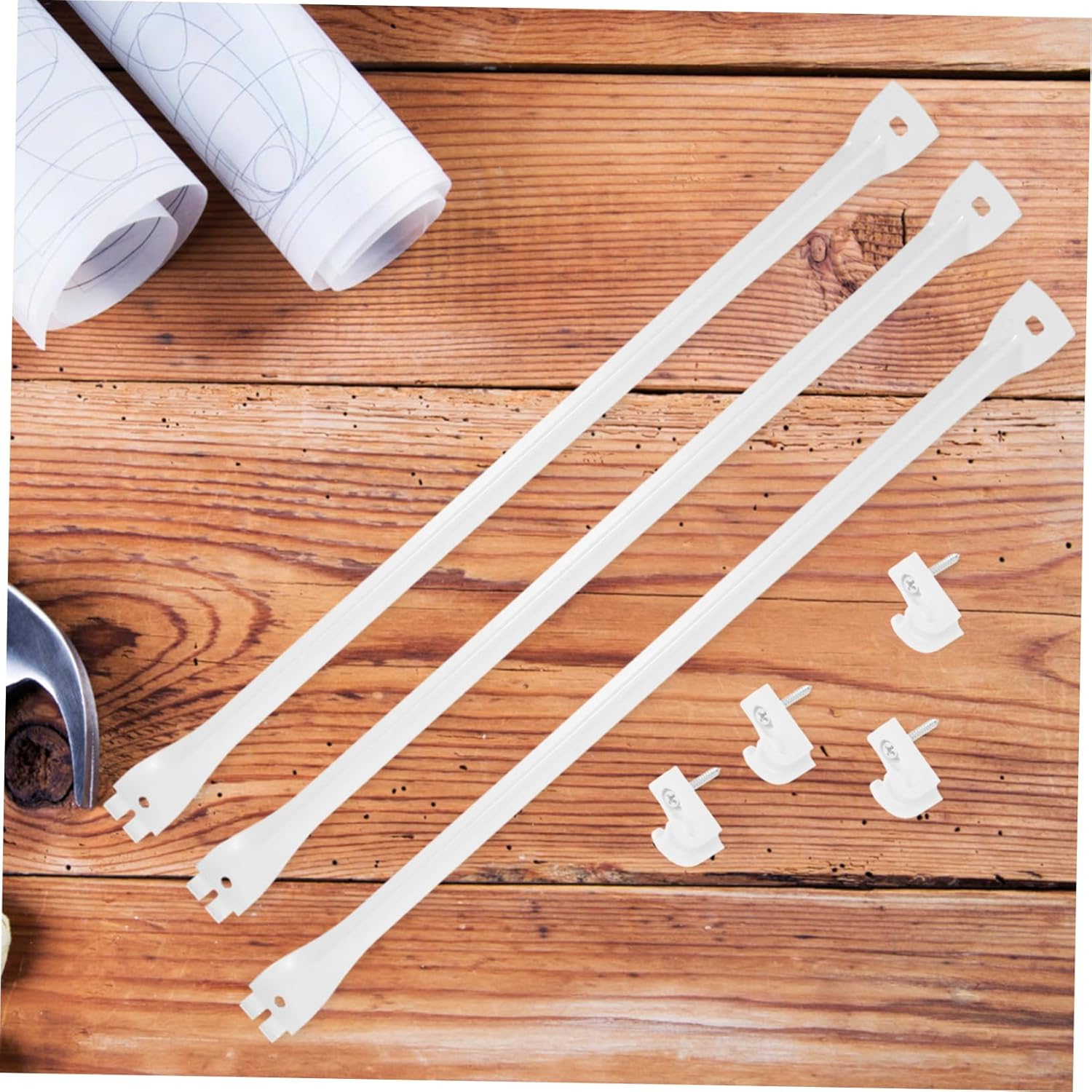 Package Include 3 x Wire Shelf Support Rod 6 x Wire Shelf Clips 2 x End Brackets Features -Color:White bathroom plastic shelf brackets -Material:Metal, plastic closet wall shelves brackets -Loadbearing excellence: engineered to handle substantial weight, these wire shelf clips are ideal for heavy duty shelving applications closet wire shelving end brackets -Size:2.70X1.60X1.20cm/1.06X0.63X0.47in heavy duty plastic shelf brackets -Protective design: featuring smooth edges, these clips safeguard cables and electronics, a neat and tidy environment kitchen plastic shelf brackets -Size:5.20X4.20X1.30cm/2.04X1.65X0.51in kitchen wire shelving clips -Multipurpose functionality: suitable for closets, kitchens, bathrooms, and offices, these brackets meet diverse organizational needs shelf hardware accessories -Size:43.60X1.50X1.30cm/17.13X0.59X0.51in kitchen wall shelves brackets -Effortless installation: designed for easy assembly, the brackets require no tools, enabling quick and efficient setup bathroom wire shelf brackets - durability: made from metal and plastic materials, the brackets resist bending and wear, ensuring dependable use over time kitchen plastic wire shelf bracketsGoods Descriptionbathroom plastic shelf brackets They help users maintain order and maximize available space .kitchen wall shelves brackets Their sleek appearance complements modern interiors, while the easy-to-use design ensures easy installation.shelf hardware accessories With a focus on practicality and durability, these wire shelf clips and brackets are ideal for creating efficient storage way in closets, kitchens, and bathrooms