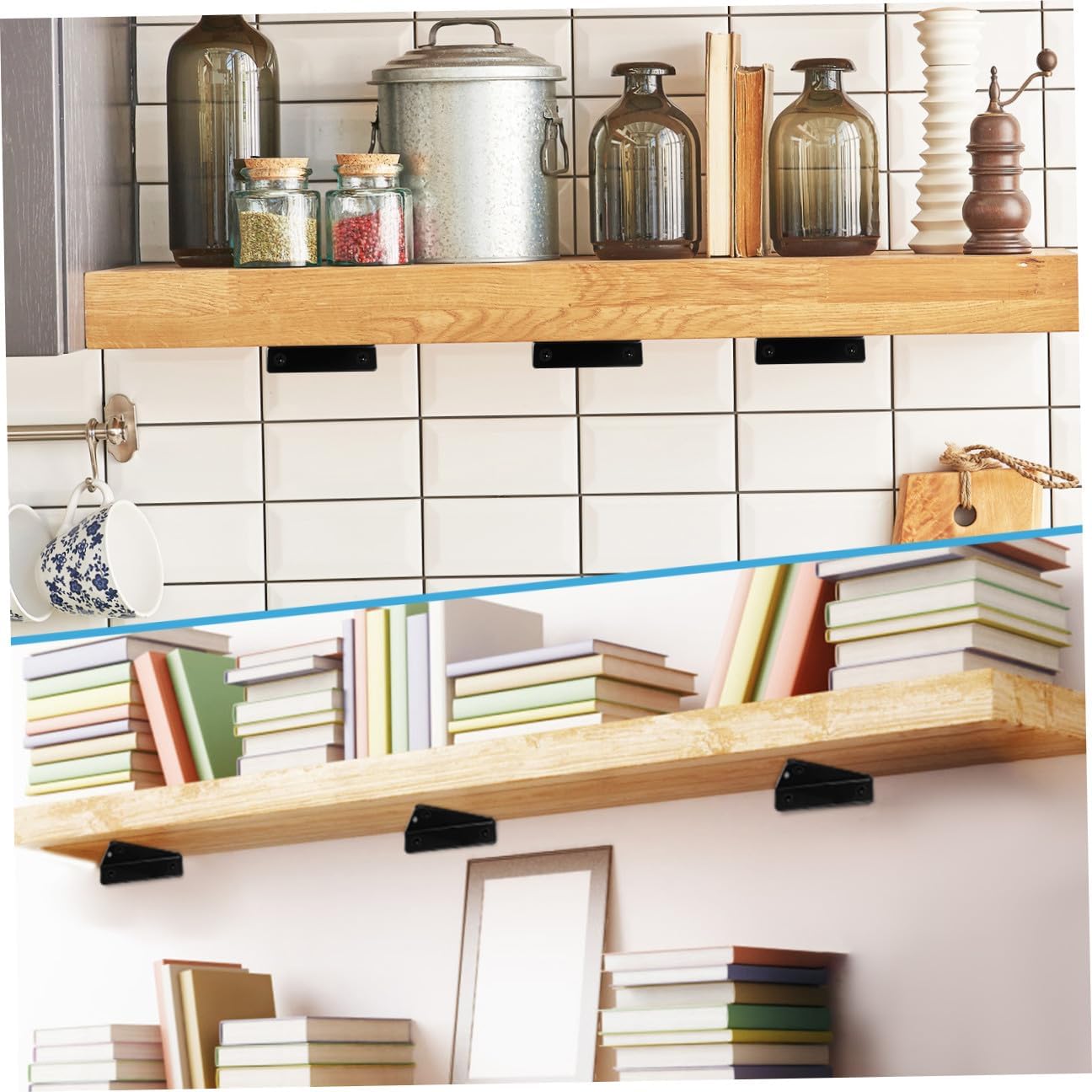 Package List 6 x shelf brackets Characteristics - Support stands: These shelves brackets offer stable supports for storage shelves, to achieve real wall mount floating shelves hanging shelf brackets. - design: With the wall mount and triangular design, the shelves brackets become invisible and will not affect the whole room decor floating shelf hardware. - Make your home neat: You can use the brackets to make floating shelves at your place, creating more for space-saving storage needs floating shelf brackets heavy duty. -Material:Iron metal floating shelf bracket - Heavy duty: These shelves brackets feature a strong load bearing capacity, can withstand various types shelves and items metal storage bracket. -Color:Black floating shelves brackets -Size: 10.00X8.00X2.50cm/3.93X3.14X0.98in floating brackets for shelves - Lasting use:Crafted from strong wrought iron material, the triangular stands are designed for exceptional strength and durability. heavy duty floating shelf bracketGoods Descriptionshelf bracket Whether you're looking to support heavy equipment or create a stable base for your DIY projects, these iron triangular support stands are sure to meet your needs.wall floating shelf bracket Are you looking for some dependable stands for your floating shelves? Try these products! These triangular stands are designed for added convenience and versatility