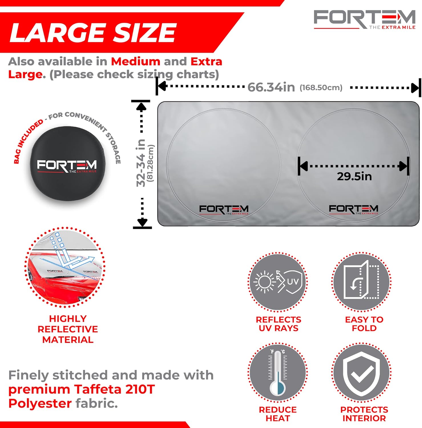 FORTEM Ratchet Straps (1650lb Break Strength, Blue) + Large Windshield Sun Shade