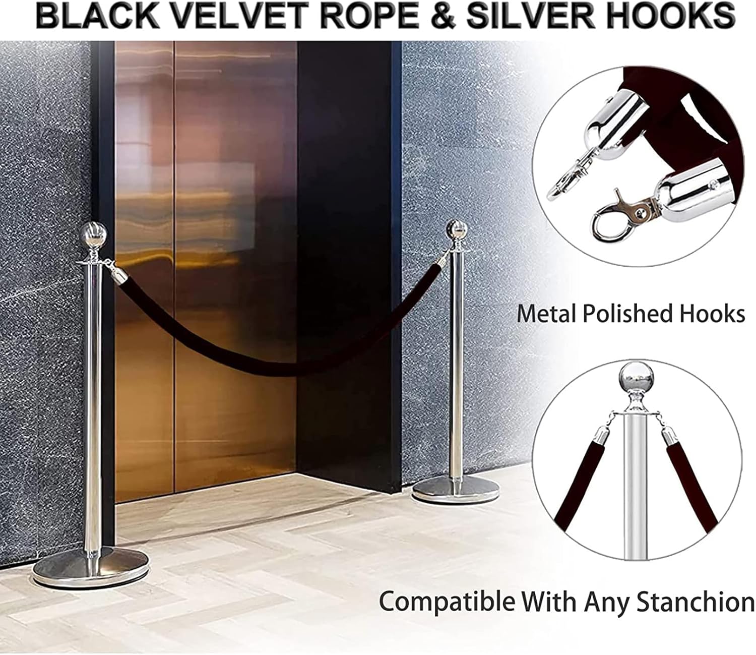 Just like the ones you would see on the red carpet or a bank or court house or movie theater they are super soft beautiful blue and the hook is good and strong.Features polished metal hooks that allow you to connect to a stanchion or hang the rope up when not in use.Whether for a red carpet event or masquerade ball, this velvet rope is adds touch of elegance to create an upscale means of crowd control.Designed to configure with any stanchion post and keeps crowds orderly and in line with style.Specifications:Material: silver polished hook + velvet ropeLength: 2ft/60cm, 3ft/90cm, 1m/3.3ft, 1.2m/4ft, 1.5m/5ft, 6ft/185cm, 8ft/245cm, 10ft/305cm. Other sizes can be customized. You can contact customer service for help.Thickness: 3cm/1.2in.Color: Black (other colors are required, please contact us by mail)Quantity: 2PcsPackage Contents: Velvet Barrier Rope x 2 (without pillars)Precautions:1. Item includes rope only, post or struts are not included!2. Due to different measurement methods, there will be an error of 1-3cm in the product. Hope you can understand!3. Light shooting and different monitors may cause the color of the object in the photo to be slightly different from the real object. Please refer to the actual product.