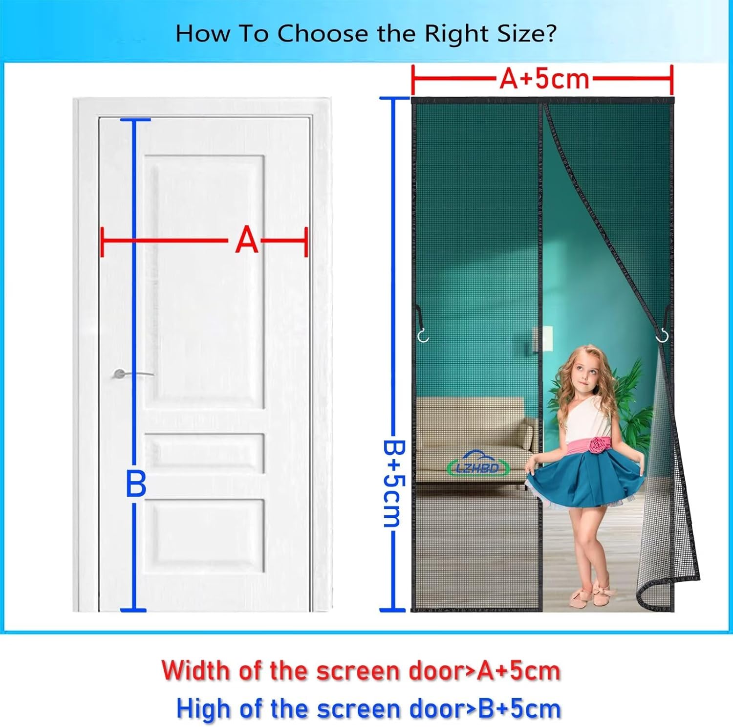 The LZHBD magnetic screen door screens block flies, bees and mosquitoes and keeps your interior cool on hot summer days. Features: Made of high quality polyester More tear-resistant and durable Easy to install without extra tools Can be closed automatically when entering or leaving Breathable mesh keeps fresh air flow Prevent insects, mosquitoes, flies and bees from entering Strong magnetism The automatic closure allows you to free your hands. How to choose the right size? The width of the door hanging ≥ (the width of the inner door frame + 5 cm), the length of the door hanging ≥ (the length of the inner door frame + 5 cm). INSTALLATION GUIDE: ①. Please clean your door frame surface. ②. Place the mosquito net on the ground and stick the adhesive tape on three sides (except the bottom) ③. Peel off the tape base ④. Paste the top of the door frame first, then on both sides of the frame, carefully peeling and firmly pressing tape along the edge of the door frame. ⑤. After installation, you can press the tape again to make it stick more firmly or adjust the mosquito net correctly. ⑥. Keep the middle of the mosquito net slightly higher than the sides, this helps the magnets close better Packing List 1 x Magnetic Anti-Mosquito Mesh Fly Curtain Ribbon x1 Push pin x1 1 x user manual (English language not guaranteed). Curtain buckle x1