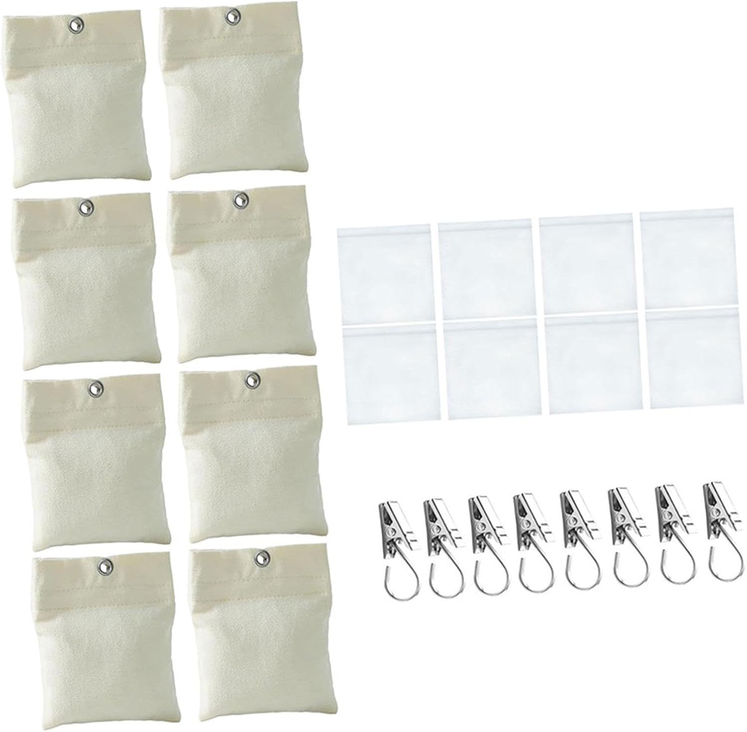 Product description Description:【Material】: Outdoor Curtain Weights Are Made Of Canvas Fabrics And Matching With Pe Sealed Bag, Which Can Effectively Prevent The Weight Bag From Getting Dirty And Ensure Long Term Use【Self Sticky Closure Design】: Curtain Weighted Bag Adopt Self Sticky Closure Design To Firmly Fix The Filler Inside, With Good Sealing, Reusable, Convenient And Practical【Easy To Use】: Curtain Weighted Bag Are Easy To Operate, Put Sand Into Pe Sealed Bag, Then Put The Sealed Bag Into The Curtain Weight Bag, And Finally Fix It With Metal Clips To Easily Complete The Installation【Strong Practicality】: Each Outdoor Curtain Weight Can Be Filled With About 15 Ounces, With Moderate Weight, Which Can Effectively Fix Curtains, Tablecloths And Other Outdoor Fabrics On Windy Days【Multi Functional Use】: Outdoor Curtain Weights Are Not Only Suitable For Outdoor Curtains, But Also Can Be Used To Fix Tablecloths, Sunshade Cloth And Other FabricsSpecification:Material: Canvas Fabrics, PeNote: The Product Is Only The Bag, Does Not Include Any Fillers Such As SandSize Chart:Curtain Weight Bag 12.5Cmx15Cm/4.92Inchx5.91InchPe Bag 12Cmx12Cm/4.72Inchx4.72InchPackage Includes:8 Canvas Bags8 Pe Bags8 ClipsNote:Please Allow Slightly Errors 1-2Cm/0.39-0.79Inch Differences Due To Manual Measurement. Manufacturer Contact Information Customer Care Whats app : (+91-7291860014),lrdecor2nd@gmail.com