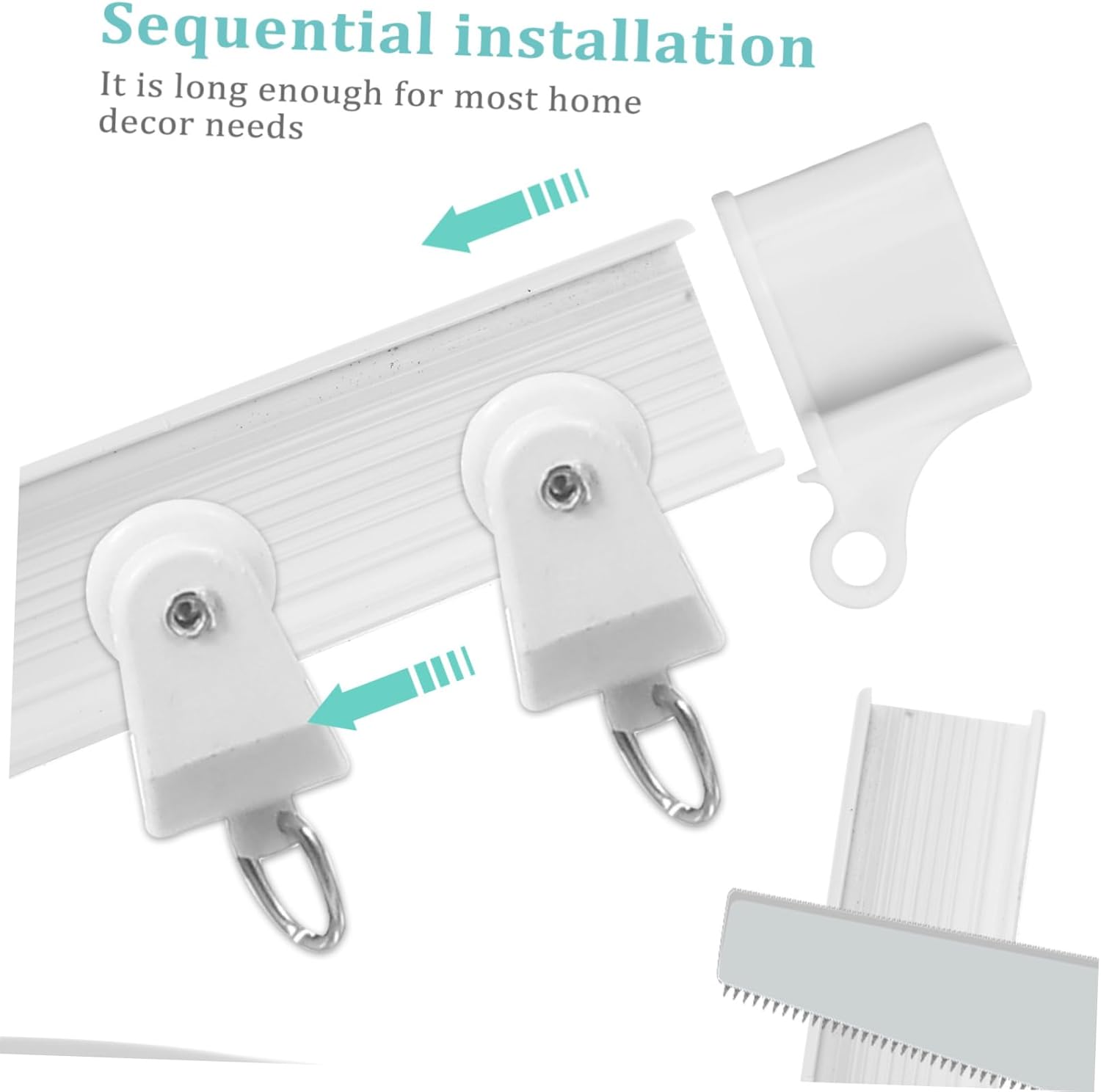 Package List 1 x track 30 x clips 30 x curtain rail gliders 15 x screws 15 x expansion screws 4 x end covers 15 x brackets Features - Versatile use: Whether you prefer drapes or sheers, this track is compatible with a variety of curtain , making it a for any room in your home Curtain Track. - Flexible track: This curtain track is designed to be attached on the wall with its flexible features, easy to with corners and curves curved curtain rail. - Size: 500.00X5.00X5.00cm/196.50X1.97X1.97in wall mount curtain track room divider -Material:Stainless steel, plastic sliding curtain track - Easy installation: This complete set of accessories makes installing your new curtain track effortless, can enjoy your new window treatments right curtain slider track. - Lasting use: The curtain slider track is meticulously crafted with user's experience in mind. It is not easy to jam and can be kept for year to come flexible curtain track wall mount. - Secure clamps: With stainless steel clamps, you can be sure that your curtains will stay securely in place, even with frequent use flexible curtain track. - ColorWhite curtain track systemGoods InformationCurtain Silent Track The set includes all necessary accessories, making it convenient to use.curtain rail track wall mount This curtain track set is flexible and bendable, and can be easily installed and used.curtain slider track It is long enough for home decor needs.flexible curtain track wall mount The and stylish stainless steel clamps ensure a hold
