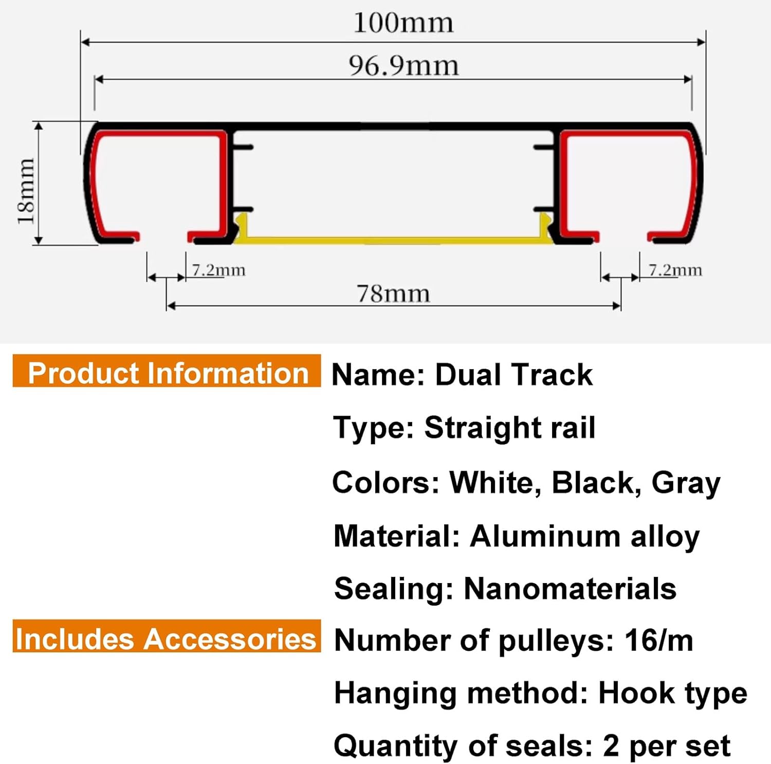 A seamless fusion of intelligent design and refined functionality, our dual-track curtain system redefines window treatments and space management. Engineered for the modern home, it empowers you to master light and privacy with unparalleled ease. Hang both airy sheers and total blackout curtains on separate, independent tracks—effortlessly filter soft daylight or create a perfect dark sanctuary with a single, smooth motion.Experience undisturbed tranquility with our whisper-quiet gliding mechanism. The precision silent rollers ensure every movement is fluid and utterly noiseless, making it an essential addition to bedrooms and nurseries where peace is paramount.Product Specifications:Material: aluminum alloyLength: 1-12mLoad: 40kg/ 88.3lbColor: Black / Gray / WhiteLength: can be customizedPulley: 16pcs/mMounting screw holes: 2/mInstallation: top mountedFeatures:Installation is straightforward and versatile, with all necessary hardware included for either ceiling or wall mounting to suit your space and preference.Package:1 x Curtain Rail SystemNote:Due to Manual measurement, product size may exist 1 ~ 2 cm error.Actual product may slightly differ from the photos due to lighting, device, shooting angle and resolution differences, but the product's quality is guaranteed.