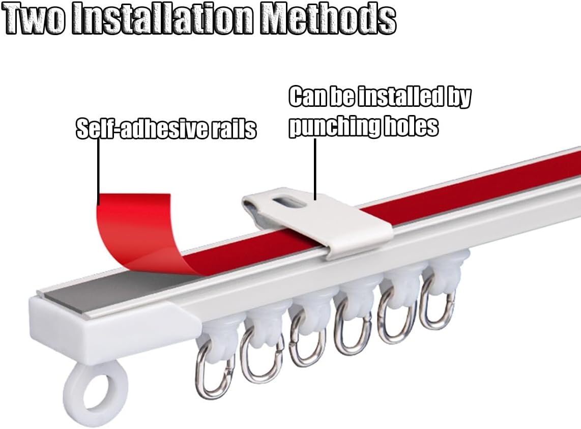 **Specifications:**- **Material:** Plastic - **Color:** White - **Installation Options:** Self-Adhesive or Punch - **Thickness:** 1.2 cm (0.5 in) - **Width:** 2 cm (0.8 in) - **Length:** Customizable through cutting and splicing - **Load-Bearing Capacity:** 3 kg/m - **Installation Orientation:** Top Installation Please note that due to shipping constraints, connectors will be provided separately for splicing upon receipt. This does not affect the actual functionality of the curtain track.
