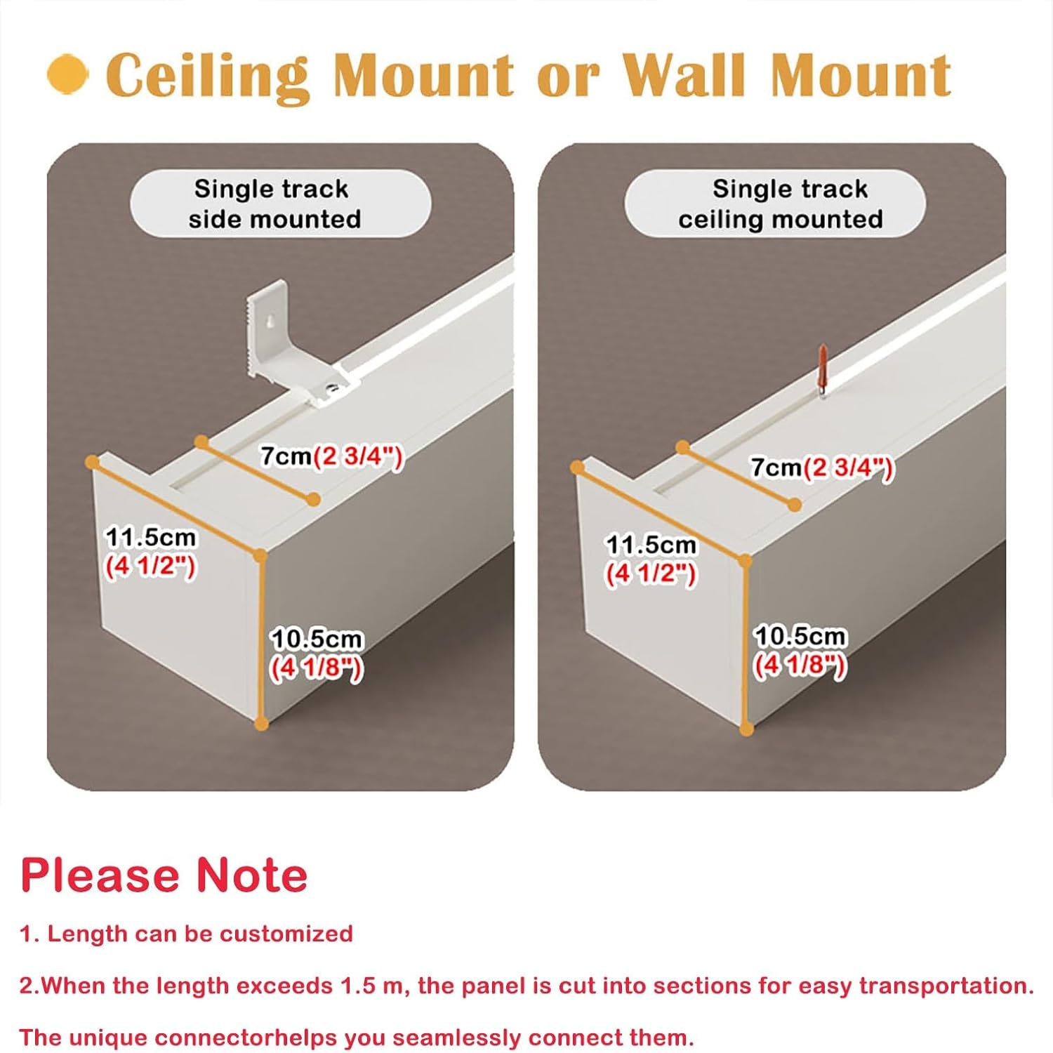 Transform your living space with our premium curtain rail track, meticulously designed for seamless functionality and aesthetic charm. Constructed from high-quality thick aluminum alloy, this curtain track system allows your curtains to glide effortlessly and quietly, enhancing your everyday experience. **Specifications:** - **Material:** Thick Aluminum Alloy - **Double Track Hooks/Rollers:** 30 pcs/m - **Load Capacity:** 60 kg / 132 lbs - **Length Options:** 1 - 6 m / 3.3 ft - 19.7 ft **Key Features:** - **Smooth Operation:** Experience effortless curtain movement, making it easy to adjust your curtains for light control and privacy. - **Sleek Design:** The elegant profile complements any interior style, providing a modern touch to your rooms. - **Corner Connectors:** Our system includes essential corner connectors that enable smooth transitions around turns, enhancing flexibility in your layout. - **Secure Positioning:** Keeps curtains reliably in place, ensuring the privacy and light filtering you desire. - **Versatile Use:** Perfect for various window sizes, shower areas, or as room dividers, adapting to your unique needs. - **Indoor/Outdoor Flexibility:** Ideal for balconies, patios, and terraces, adding style to your outdoor living spaces. - **Durable Construction:** Designed to support heavy drapes and thick curtains without compromising integrity. **Package Includes:** - 1 x Curtain Track - All necessary Mounting Accessories **Custom Solutions Available:** If you don’t see the ideal size listed, please contact us for tailored options that fit your requirements. **Color Disclaimer:** Please be aware that slight color variations may occur due to monitor settings and lighting conditions. **Customer Support Commitment:** Your satisfaction is our priority. For any inquiries or assistance, feel free to reach out to our dedicated 24-hour customer service team. Elevate your interiors with our versatile curtain rail track—where style meets practicality!