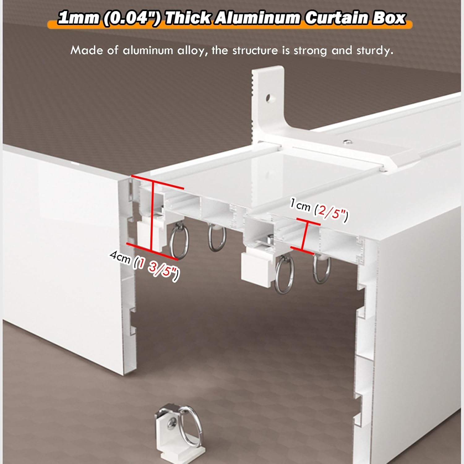 This aluminum curtain pelmet box provides a sleek and modern solution for your window treatment needs, ensuring a refined look in any room. Featuring 16 pulleys per meter, our track system allows for smooth and silent operation, enhancing your living space without disruptive noise. The sturdy construction supports up to 40 kg (88 lbs), making it suitable for heavy curtains while maintaining effortless functionality. With customizable lengths ranging from 3 ft to 30 ft (1 m to 9 m), our curtain track can be tailored to fit your window perfectly. For lengths over 170 cm (5' 7"), we provide connectors for segmented installation, ensuring a seamless fit. The aluminum plate is 1 mm thick, offering durability without compromising style. Designed with convenience in mind, our curtain track features a light strip slot, creating a cozy or romantic atmosphere in your living room, bedroom, balcony, or terrace. Transform your home into a tidy and visually appealing space with ease. Included in the package is one curtain pelmet box along with essential accessories and connectors. Prior to installation, we recommend measuring your window length to ensure a perfect fit.