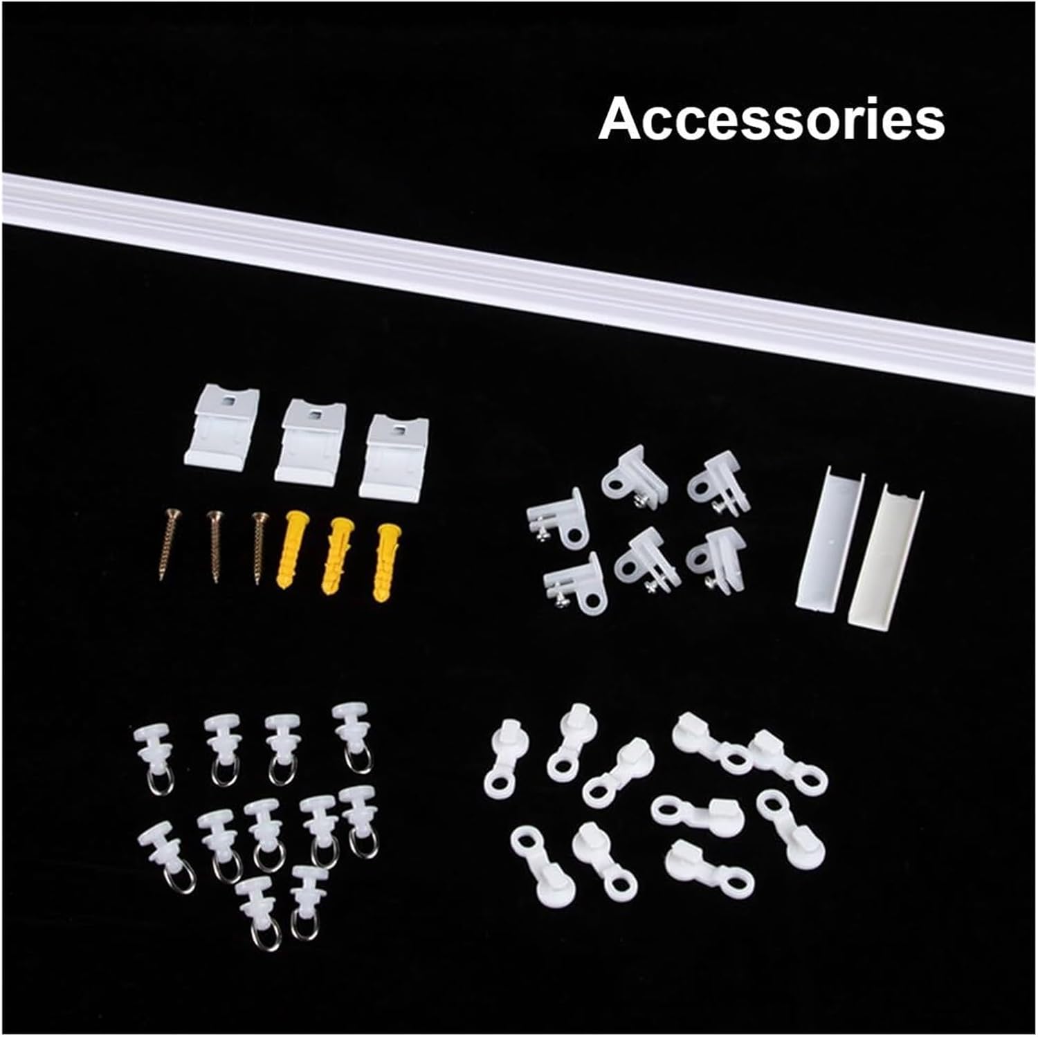 Have you experienced the following problems?High installation costs for workersDamage to walls and unsightlyLoud noise and fear of affecting othersAre you still worried about the troublesome installation procedures and high installation costs?Choose our self-adhesive curtain track, which is quite easy to install, runs smoothly, and has a long service life.Easily solve your worries, no need to tighten or drill, and can be easily installed anywhere you need.Our curtain track is designed with adhesive tape for an easy and damage-free installation. Get your instant privacy without the need for drills and screws! Simply peel the paper backing and stick to a clean surface.Product specifications:Product name: Self-adhesive curtain railMaterial: PvcRoller: 8 pcs/mColor: WhiteStyle: Simple, miniInstallation method: Ceiling/wall-mountedScope of application: Curtain rails can be used in various living rooms, room partitions, living rooms, bathrooms, bedrooms, wardrobes, room partitionsWe offer a variety of track set sizes to help you find the perfect track for your space. Whether you need a curtain track for a small or big space, we have a solution for you!