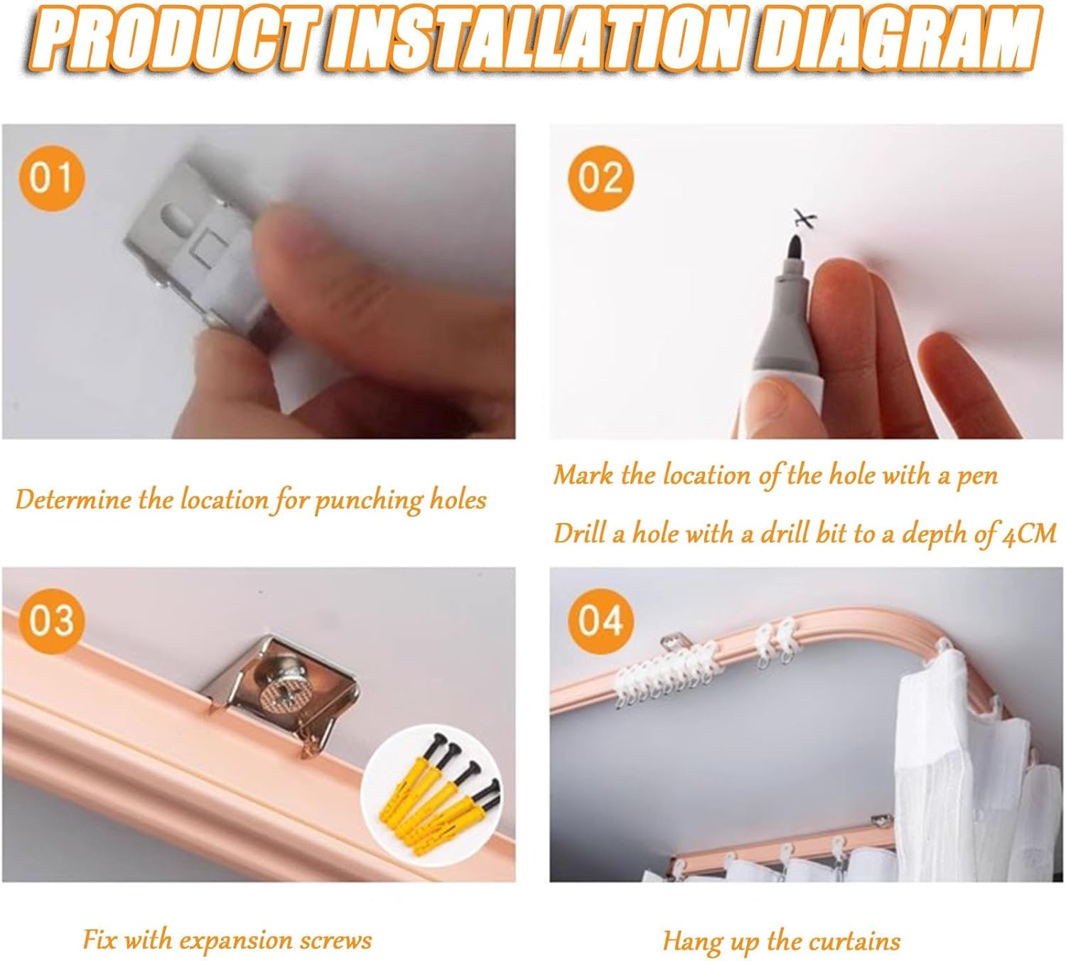 The curtain track kit is made of high-quality aluminum alloy, with a sturdy structure and easy and fast installation, We will provide different sizes of track kits for you to choose from to meet the needs of different customersWhether you are relocating or renovating a new home, our curtain rails are for youstandard:Product Name: Curtain MonorailMaterial: Aluminum alloyLength: 1meters/3.2TF~4.2 meters/13.7TF, can also be customized according to your needsNumber of wheels: 8 per meterMonorail load: 5kg/11lbsInstallation method: Side installationNote:Due to transportation restrictions, curtain tracks exceeding 1 meter (3.2 TF) will be sent out in sections and require the use of connectors, which are simple and convenient, including connectorsfeatures:Its design is low friction, so there is no noiseThere is an installation manual included in the productIt can be used anywhere you likepacking:The set includes: one monorail, eight pulleys per meter, and a complete set of screws (including installation accessories such as brackets, screws, and clips)be careful:Manual measurement: There may be a 2cm error in product sizeIf a slight odor is normal, it will disappear within two to three days
