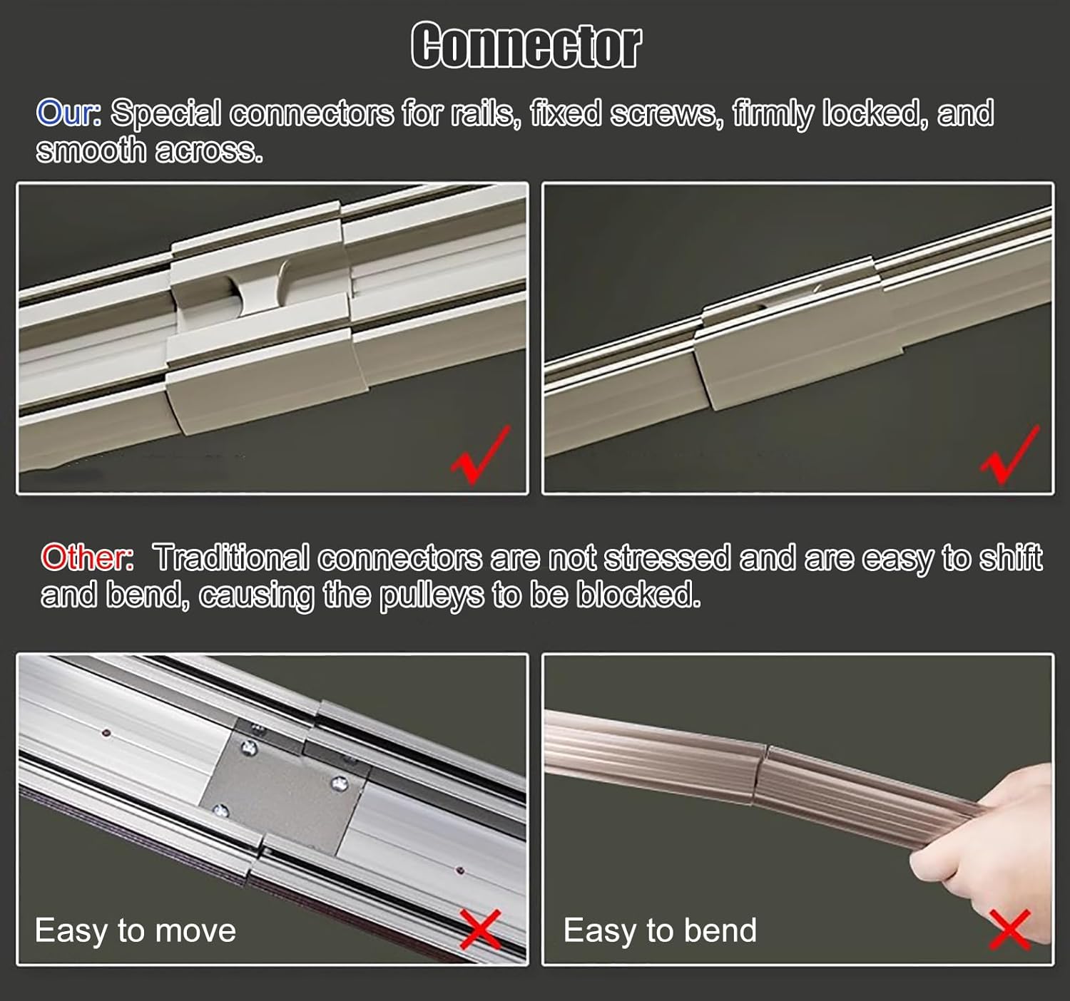 1 × Curtain Track Set ( curtain track, pulley, end caps, and hardware set)Precautions:- Manual measurement may result in a 1-3 cm error in product size.- Photos may appear different due to lighting and resolution, but product specifications remain accurate.- Please refer to size measurements before purchasing.Elevate the aesthetic of your home today with our high-quality Curtain Track set!