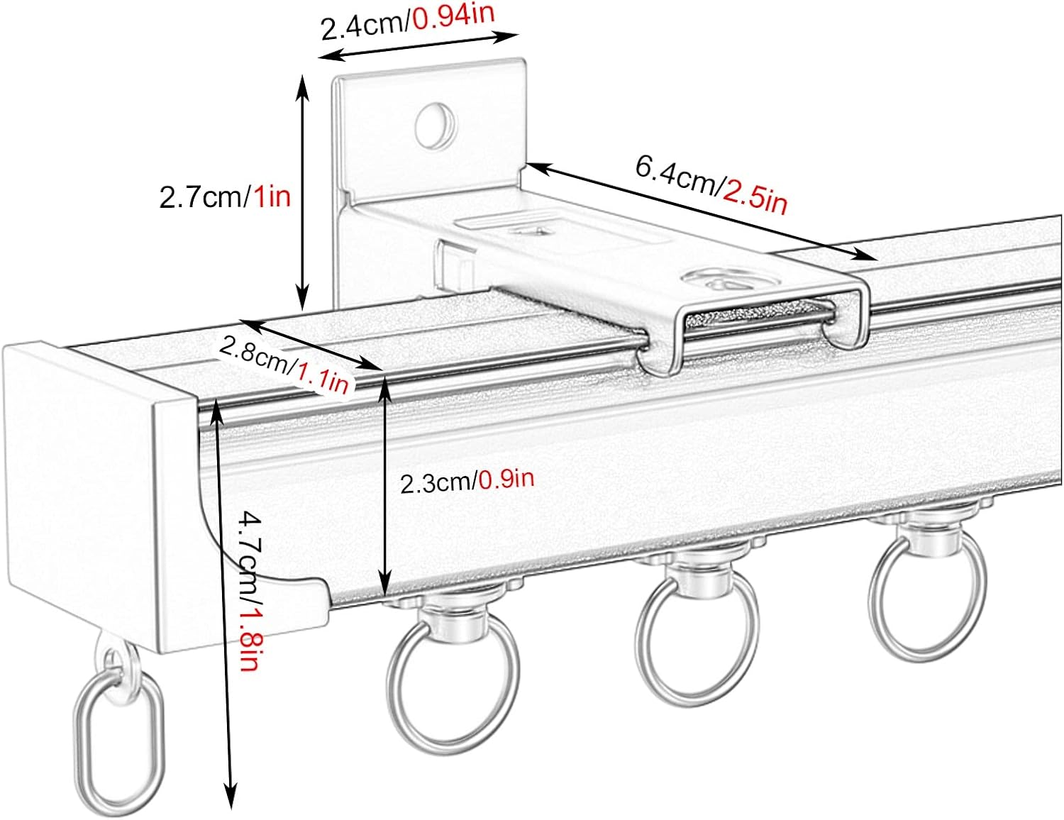 Our modern simple curtain track rail is used to hang curtains, facilitate the smooth opening and closing of curtains, while increasing the beauty of the curtain fabric curtain. ◆ Specifications : - Material : Aluminum Alloy - Weight Capacity : 50kg/110lbs - Wall Tube Thickness : 2 mm Thick - Suitable for any type of curtain panels, valances, drapes, sheers room dividers, projectors and any spaces ◆ Installation Steps : 1. Measure all relevant dimensions of windows. 2. Cut the track and connect the track with the track connector; 3. Insert rollers into the track rail and fasten the end caps; 4. Hole the wall/ceiling and mount the track brackets with bolts; 5. Snap in the connected track into the mount brackets (you will hear a click sound); 6. Check if the track is securely installed and hang the curtains. ◆ Package Includes : 1× Curtain Track (Includes Installation Accessories) ◆ Note : - Due to transportation restrictions, curtain rails exceeding 1.5m will be sent out in sections. Need to use connector. - Please be reminded that due to lighting effects and monitor's brightness/contrast settings etc, the item's color may be slightly different from the pictures. Please understand.