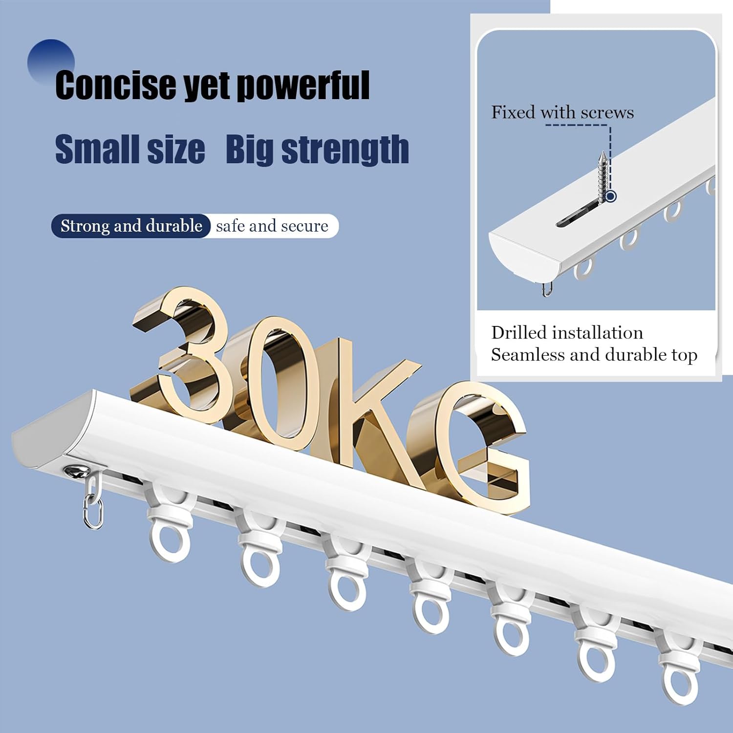 ◆ The silent Single curtain track design features low-friction runners, with PVC silent strips and nano wheels,ensuring a smooth and noise-free sliding motion.◆ The rail use raw aluminum material,no impurities,corrosion, wear and weather resistant. ◆ The rail is shipped with protective films to maintain its flawless appearance.◆ Ceiling mount track system, no light leakage and not easy to hide dust.◆ Tracks longer than 39 inch(100 cm) will be sent in sections, and we will provide connectors to ensure the smooth passage of the pulleys.◆ Single curtain track has 8 nano wheels per meter.◆ This Single curtain track set includes rails, runners, end covers, and a full screw set, Easy to Install.◆ Ceiling mount curtain rail system, hidden track,quiet curtain rail,hotel curtain track divider, aluminum rail system, DIY track install, School,Dormitory,Apartment,small space solution.Kind tips: This curtain track does not include hooks. (Regarding the curtain hooks.)