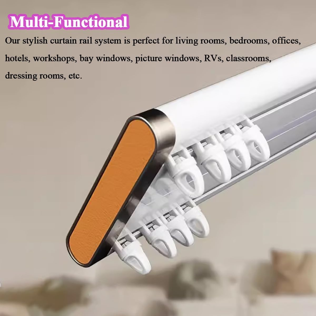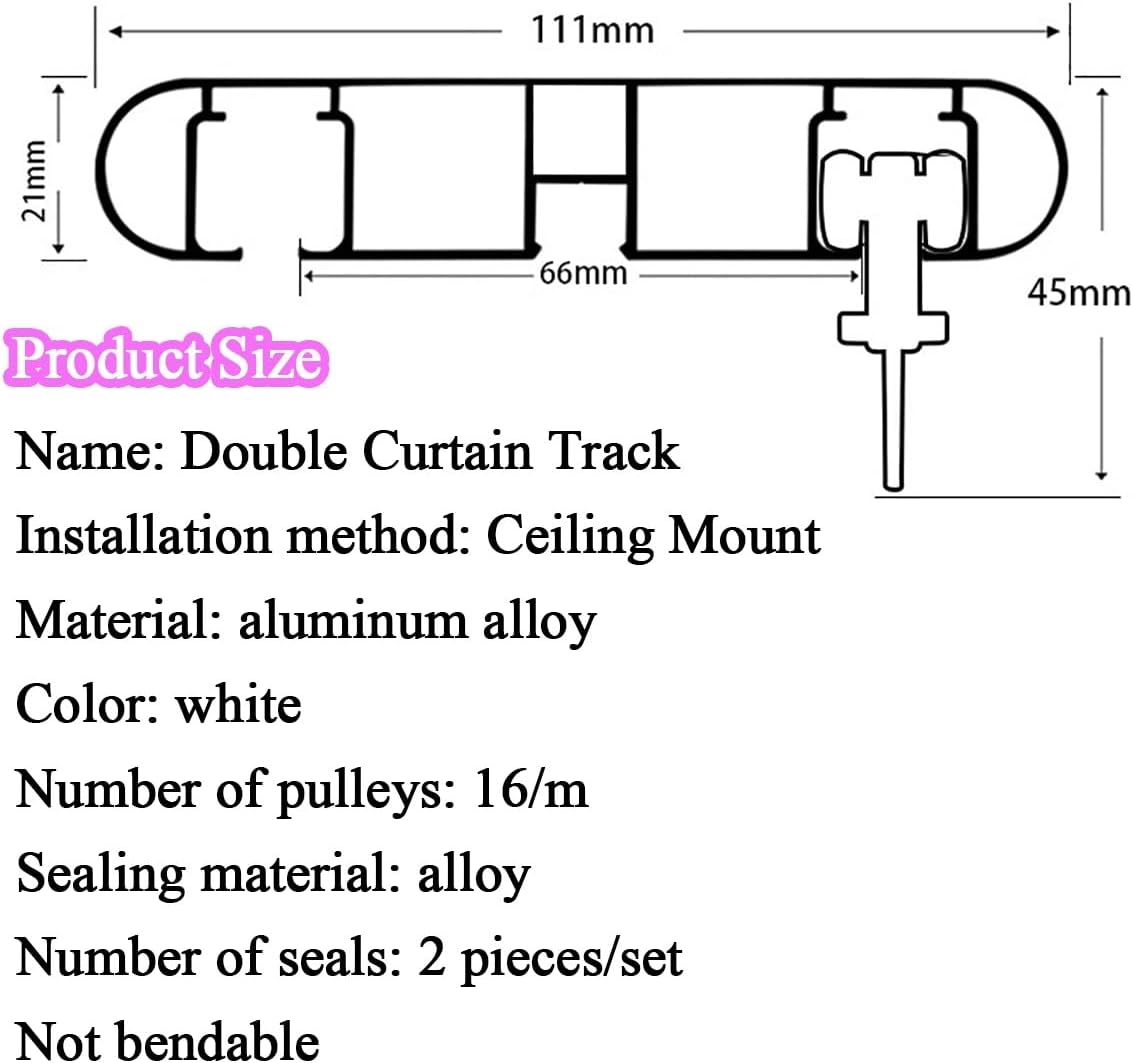 Our steel curtain rail is easy to install in any space. - Whether for your living room, shower, bedroom, drop ceiling, bay window, RV, hotel, classroom, or for hanging cubicle curtains - our ceiling mount or wall mount will achieve the look you desire.♦ Specification:Material: aluminum alloyLength: 3.3ft-26ftLoad: 40kg/ 88.3lbColor: WhiteLength: can be customizedPulley: 16pcs/mMounting screw holes: 2/mInstallation: Ceiling MountingNote: For tracks exceeding transportation length limits, delivery will be in sections, connected in the middle by connectors. The Track can be resized by using a hacksaw as needed. ♦ Features:No light leakage, eyes will not be covered by sunlight when working.Sturdy, beautiful and noiseless.Fix my heavy blackout curtains.Implement space separation or improve interior decoration.The room has larger windows or the room light needs to be adjusted.Improve indoor ambience and design.Improve indoor environment and improve quality of life.Strong load-bearing and smooth slide rail.Add new elements to your home to highlight personalized decoration.♦ Package:1 x Curtain Rail♦ Note:Manual measurement, product size may exist 1 ~ 2 cm errorIf a slight odor is detected, it's normal and will disappear within two to three daysActual product may slightly differ from the photos due to lighting, device, shooting angle and resolution differences, but the product's quality is guaranteed.