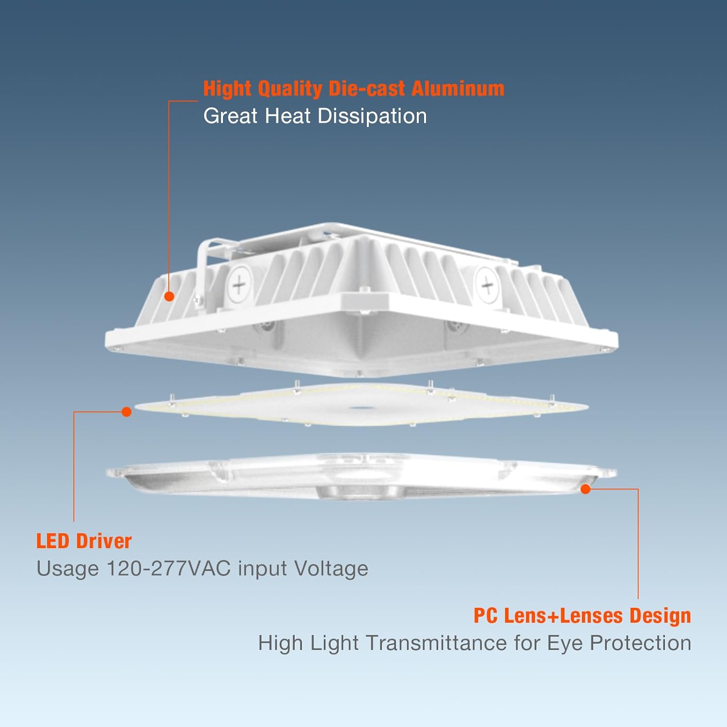 100W LED Canopy Light series is the premier choice for industrial and commercial lighting in a variety of settings, such as gas station, house, entryways, Other Commercial Lighting Applications, Support Ceiling Mount or Conduit Pipe Mount and more.