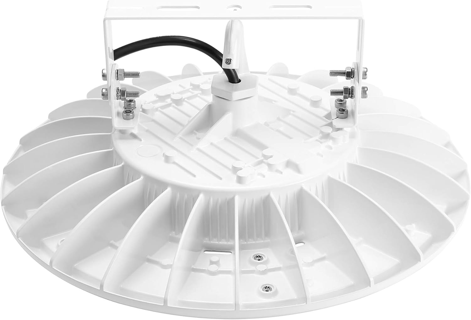 BRIGHTEST LUMENS- This 180W high-quality and powerful high bay light gives off industry-leading illumination! Its commercial-grade compatibility and 22500 lumens easily make this light the best choice when it comes to wide and clear illumination! With up to 150 lumens per watt, Save energy by as much as 80% when replacing the power source of inefficient old HID, HPS, Metal Halide high bay light. EASY INSTALL AND QUALITY ASSURANCE- ETL DLC-certified ufo led high bay fixtures are easy to install and operate. This kit comes with US rugged mounting hook, 5 ft power cord and safe rope, installation manual, and hook mount to make the UFO lights easier to hang. Simple to replace existing lights or make a new installation. HEAT DISSIPATION AND DURABLE- IP65 waterproof led high bay light, great for working perfectly in bad weather. With pure aluminum cold forged housing provides excellent heat transfer, extends component life, and prevents damage, saving you money. Its commercial-grade durability makes it the most rugged and versatile fixture in the indoor and outdoor lighting market. WIDE APPLICATION- 100-277vAC, 5000k daylight ufo high bay light, with 120 ° beam spread for excellent coverage. It is perfect for Commercial and Industrial lighting, like large retail Stores, Warehouses, Gas Stations, Factories, Workshop, Gyms, Factory buildings, Shopping Mall Stadium Exhibition Hall, etc 5-YEAR WARRANTY– Tanlite Lighting offers its customers an unbelievable 5-year warranty! We guarantee that you will love this light and it will function 100% effectively, but if for some reason it doesn’t, just contact us to send a message to us, We will respond within 24hrs.