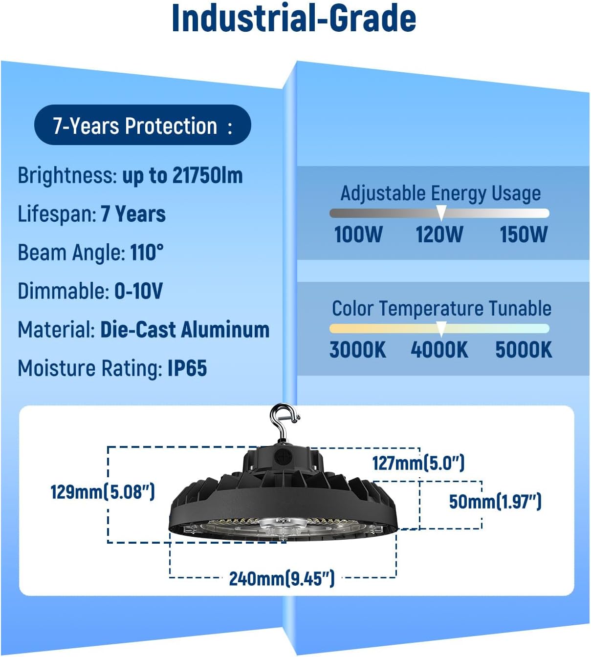 | Theme | High Efficiency:145lm/w, Modern, Wattages Adjustable:150W/120W/100W |